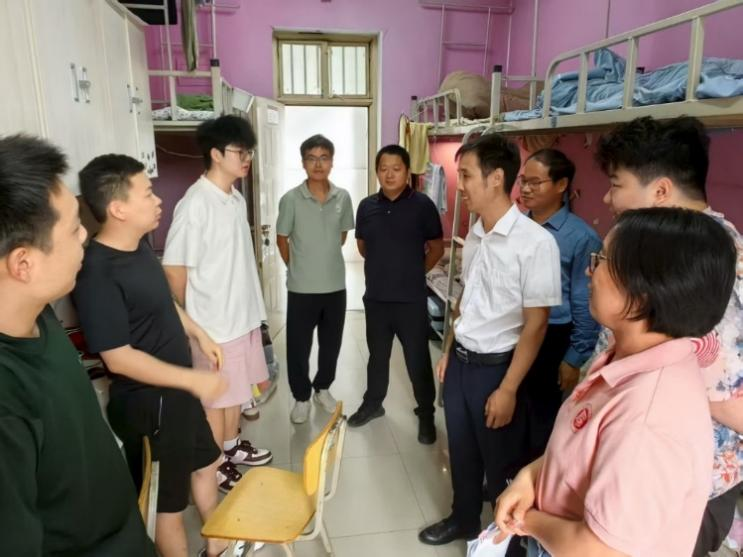 走访过程中,各位领导老师与新生们亲切交谈,详细询问同学们的家乡籍贯、入学感受及住宿适应情况,耐心解答同学们关于学业、生活的初步疑问,勉励新生要尽快转变角色,适应大学环境,做好学业规划,珍惜同窗情谊,以饱满的精神状态开启大学新篇章。