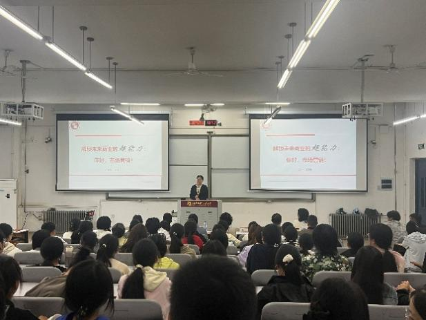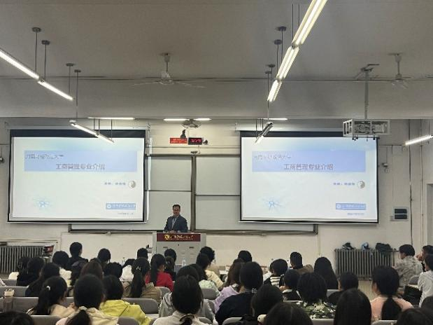在专业认知环节,三位教研室主任分别对各专业进行了系统介绍。战略与数字领导力教研室主任田启涛、市场营销教研室主任王苗苗、人力资源管理教研室主任韩雪亮依次登台,围绕各专业的培养体系、师资力量、核心课程、未来发展前景及就业方向等方面进行了生动而详细的解读。这不仅加深了新生对所学专业的理解,也为他们未来的学业规划指明了方向。会议最后,院务主任张佳老师以“学习与角色转换”为主题,为新生们带来贴心分享。