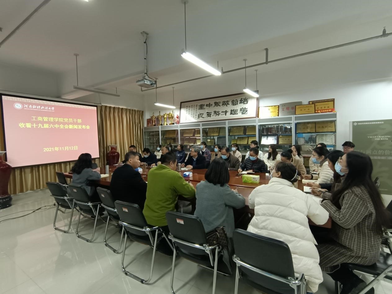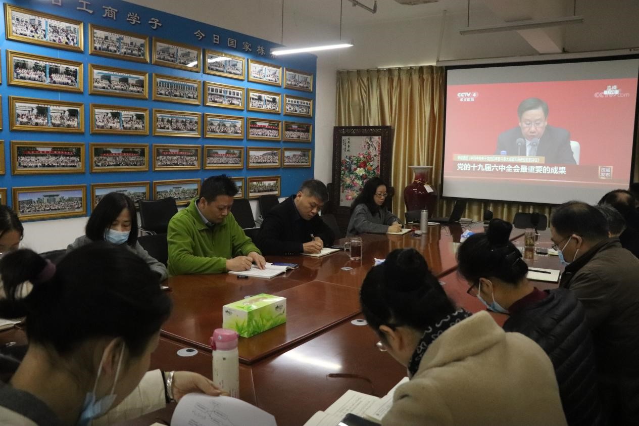11月12日上午10点,williamhill英国组织党员干部准时收看十九届六中全会新闻发布会直播,认真聆听学习党的十九届六中全会精神,党委书记王永伟、院长牛全保以及全体学院领导、师生党员代表参加学习观看直播。