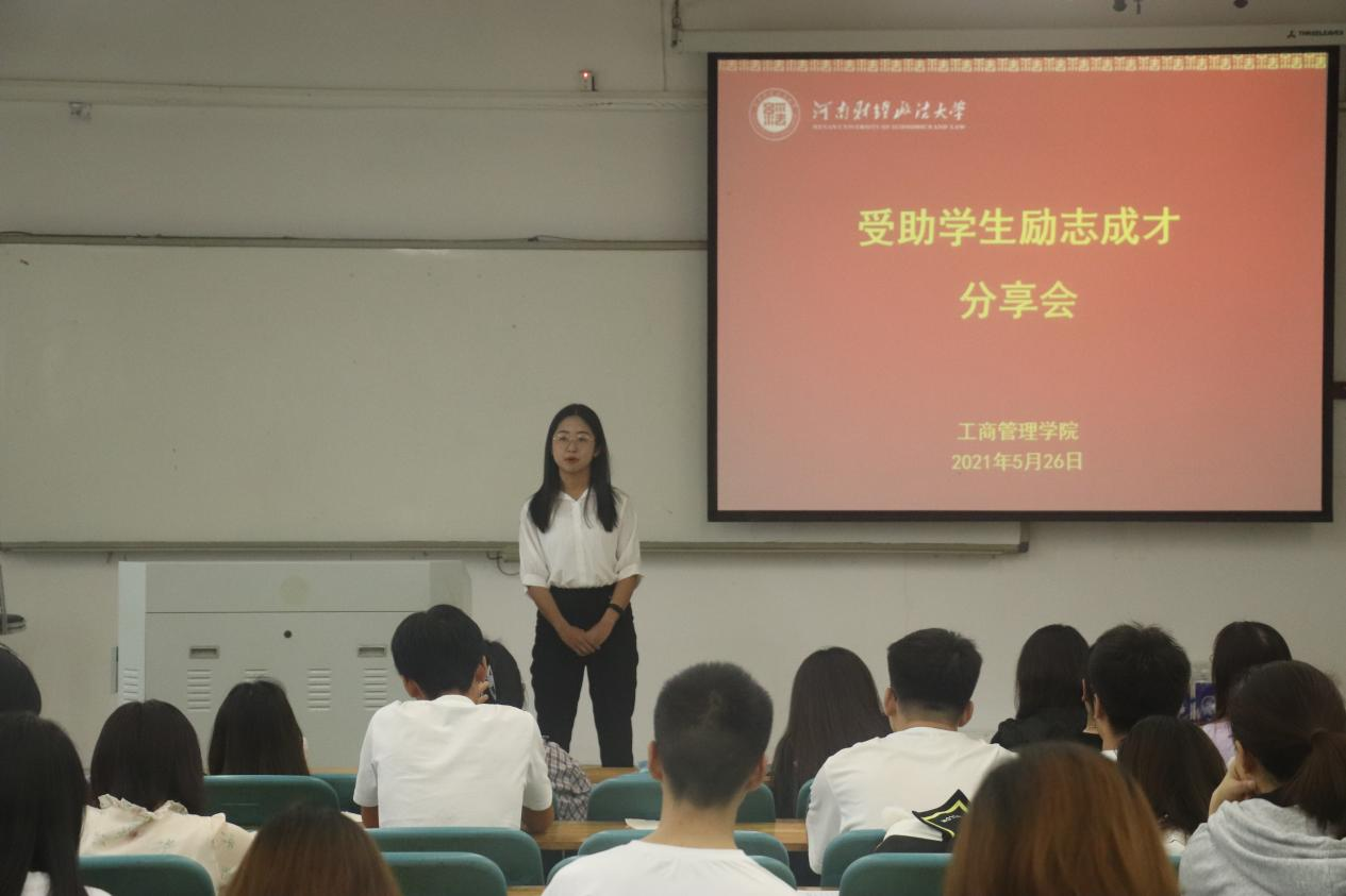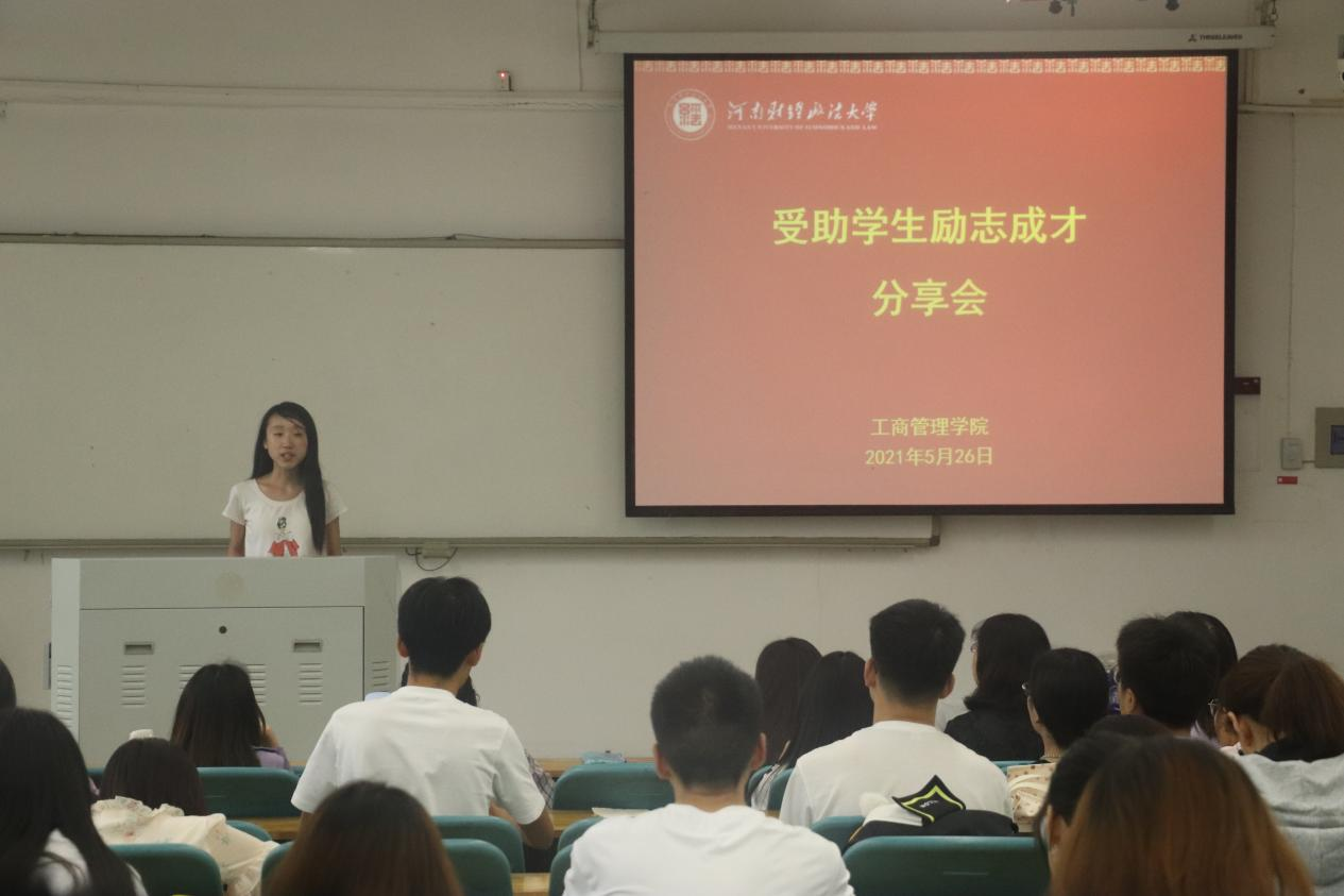 5月26日中午,williamhill英国于教学科研楼116教室举办受助学生励志成才分享会。2017级受助学生崔晶晶、李莹莹分享了他们在校期间受助和成长的经历与感受。学院党委副书记赵辉莅临出席,资助工作专管员郭媛园主持,学院家庭经济困难学生100余人参会。