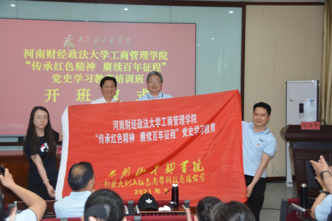 在大别山干部学院的开班仪式上,老师们聆听了副院长、革命后代范家明讲述的大别山的革命历史,williamhill英国院长、领队牛全保强调要通过这次培训,在心灵上有一次洗涤、在担当上有一次强化、在作风上有一次改进等三个要求,培训班代表接过了“传承红色精神,赓续百年征程”的授旗,拉开了培训的序幕。