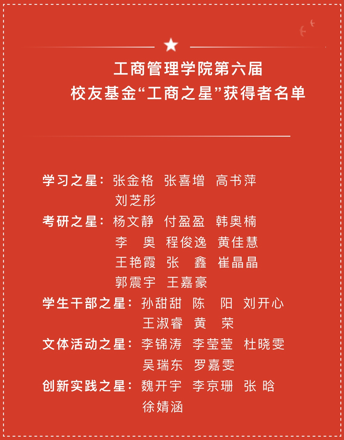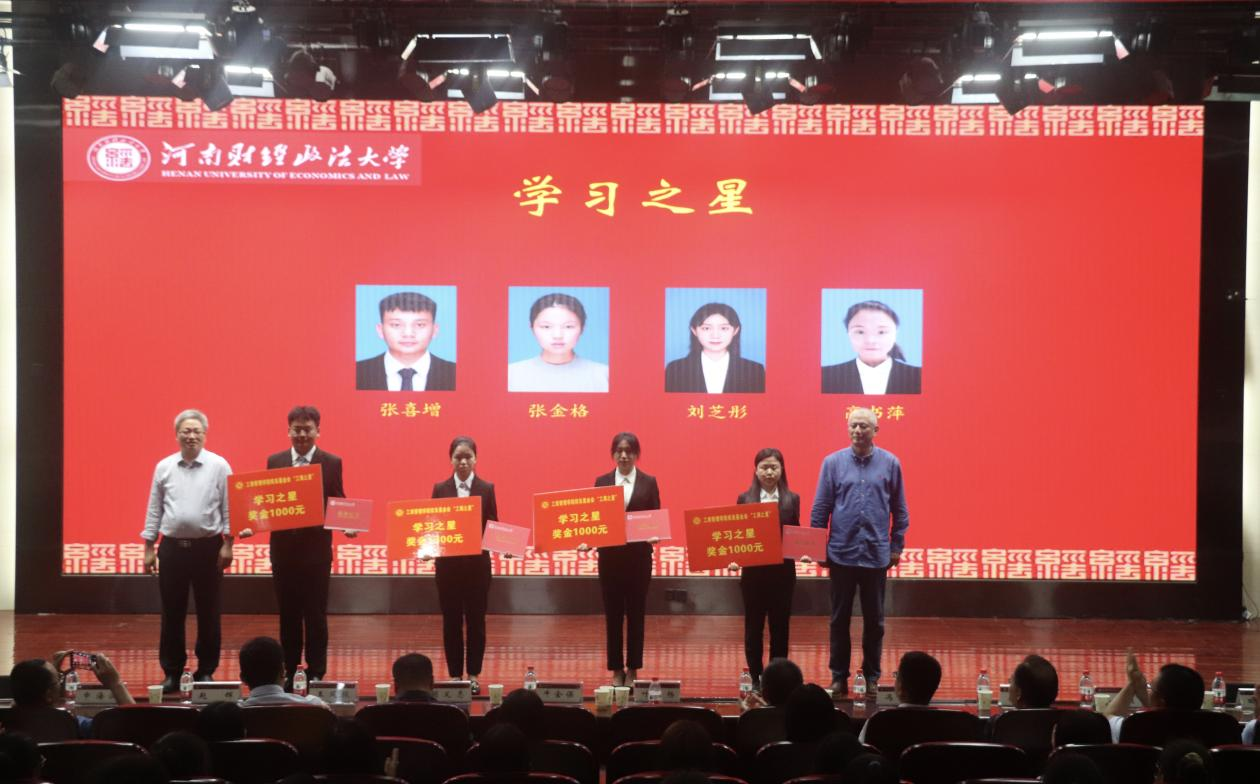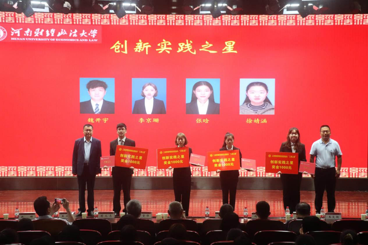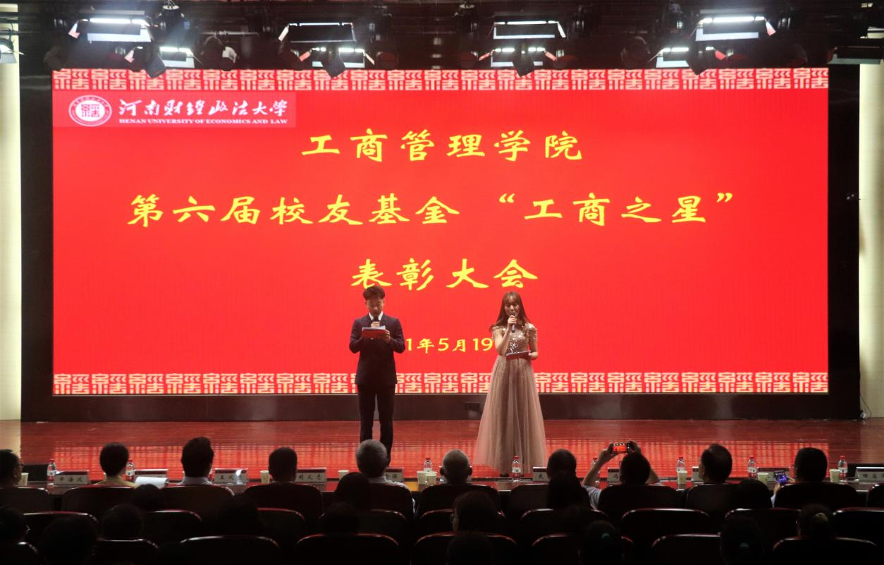 我院第六届校友基金“工商之星”经前期申报评选,共有29名学生分别获得“学习之星”、“考研之星”、“学生干部之星”、“创新实践之星”、“文体活动之星”等荣誉称号。5月19日晚,williamhill英国于东配楼202报告厅举办第六届校友基金“工商之星”表彰大会。williamhill英国院长、校友基金会理事长牛全保,党委副书记赵辉,副院长蔡树堂、王文超,校友河南甲元建筑设计有限公司法人代表、董事叶扬,河南省优秀驻村第一书记、全国脱贫攻坚先进个人许昌市财政局胡义志,郑州豆麦企业管理咨询有限公司董事长兼总经理史红民,校党委组织部正处级组织员冯建栋,我校老师申海波等出席会议,近300名学生参加活动。