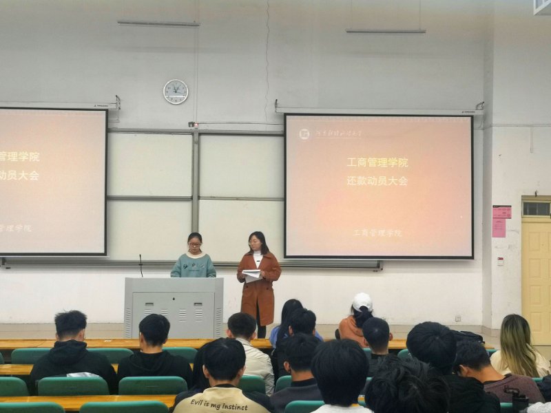2020年10月27日中午,williamhill英国于教学科研楼208教室召开贷款毕业生还款动员大会,学院资助专管员郭媛园老师参加,2017级贷款学生参加。
