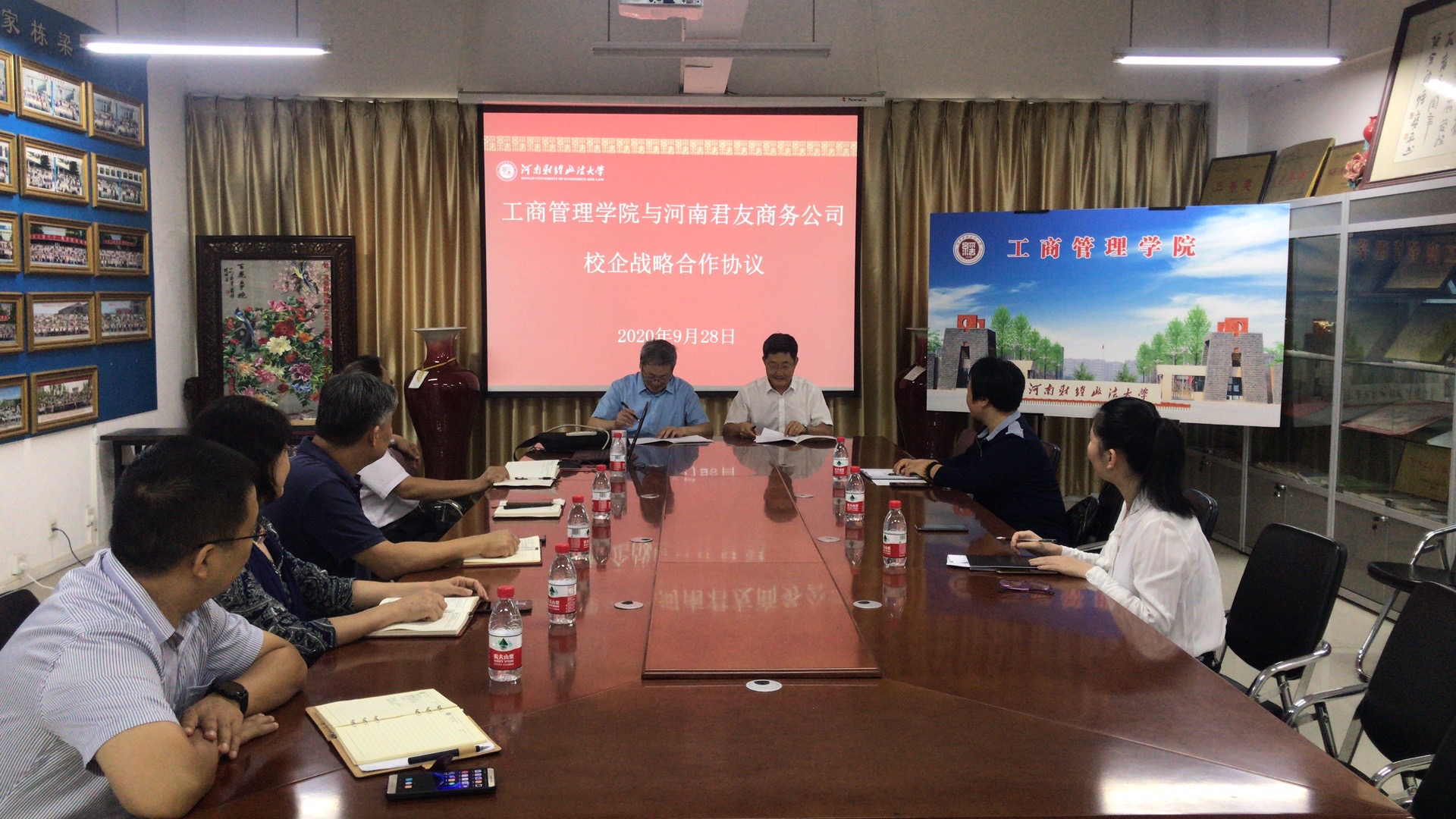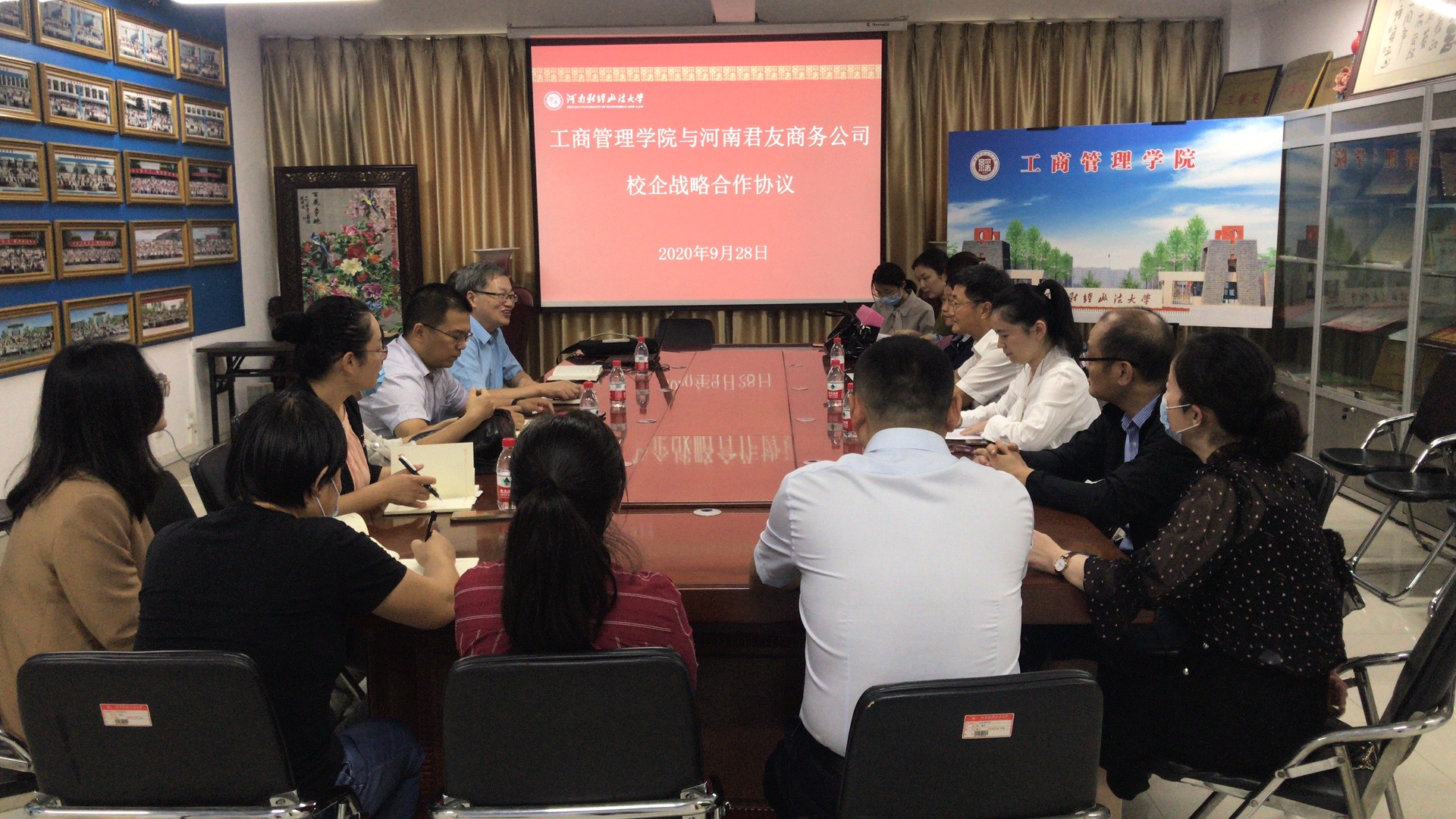 2020年9月28日下午,williamhill英国与河南君友商务咨询有限公司(以下简称:君友咨询)在教学科研楼771会议室举行战略合作协议签约仪式,学院党委书记孙向东、院长牛全保、君友咨询董事长徐延军等双方相关人员参加了签约仪式。