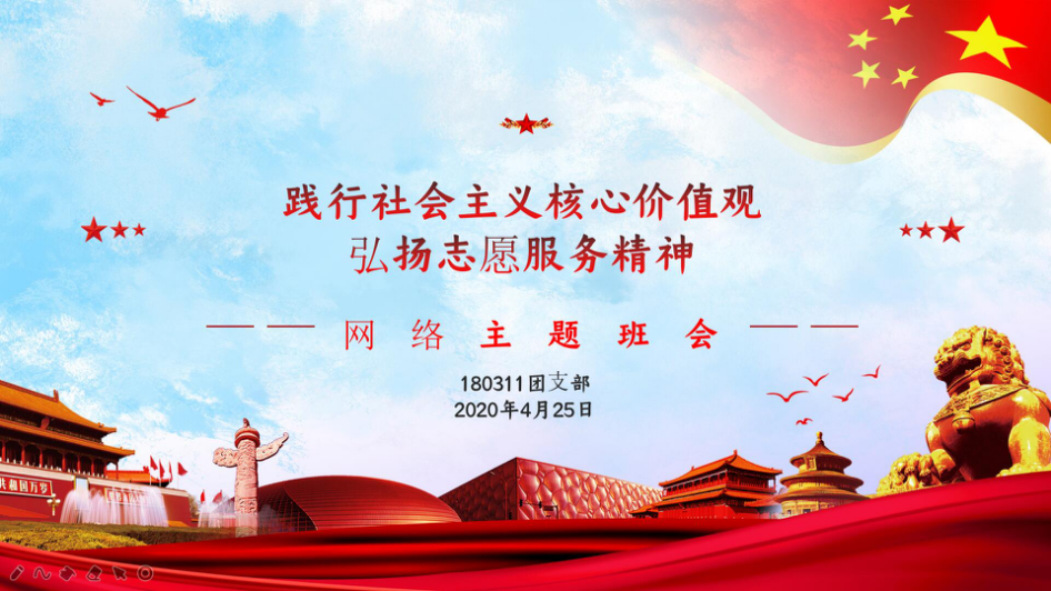 “一次团支部志愿服务活动”,由各团支部举办“践行社会主义核心价值观 弘扬志愿服务精神”主题网络支部会。各团支部邀请本团支部或者兄弟团支部参与疫情防控的志愿者同学做交流分享。志愿者同学们生动讲述他们主动请缨的战“疫”经历,畅谈志愿服务的意义。同学们深受感动的同时,进一步加深了对社会主义核心价值观的理解,提高了参与志愿服务的热情。