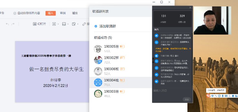 疫情阻挡了复学的脚步,却挡不住思想的交流。2月19日——22日,williamhill英国辅导员们通过钉钉平台在线直播,以抗疫为主题,分别在各年级组织网上主题班会,为同学们上新学期思政第一课。