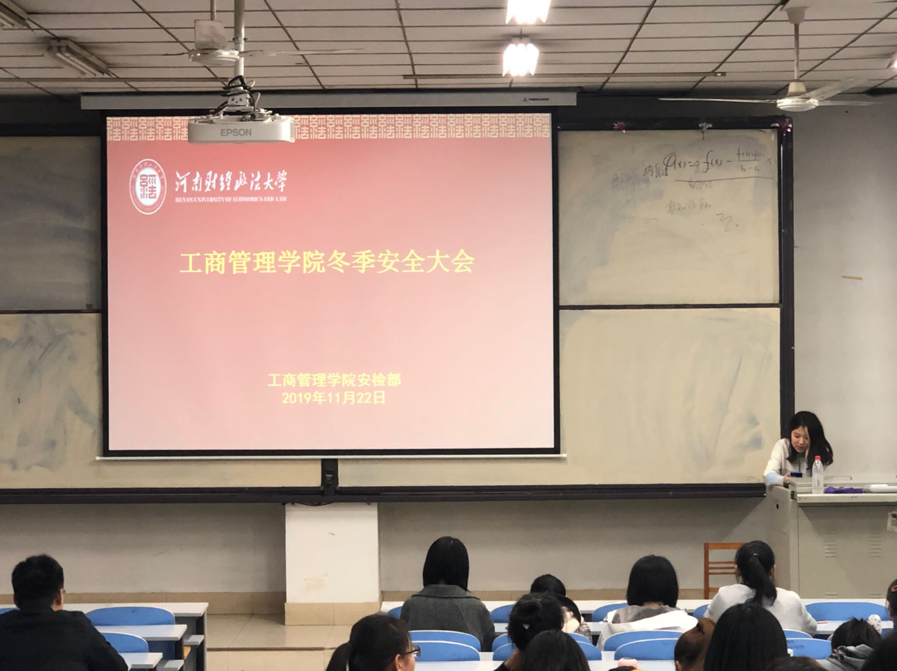 2019年11月20日下午,我院于教学科研楼210教室举办冬季安全教育大会。辅导员郭媛园、陈晨到会督查指导工作,2016级至2019级各班班长、团支书、安全委员以及全体寝室长共计230人参加会议。