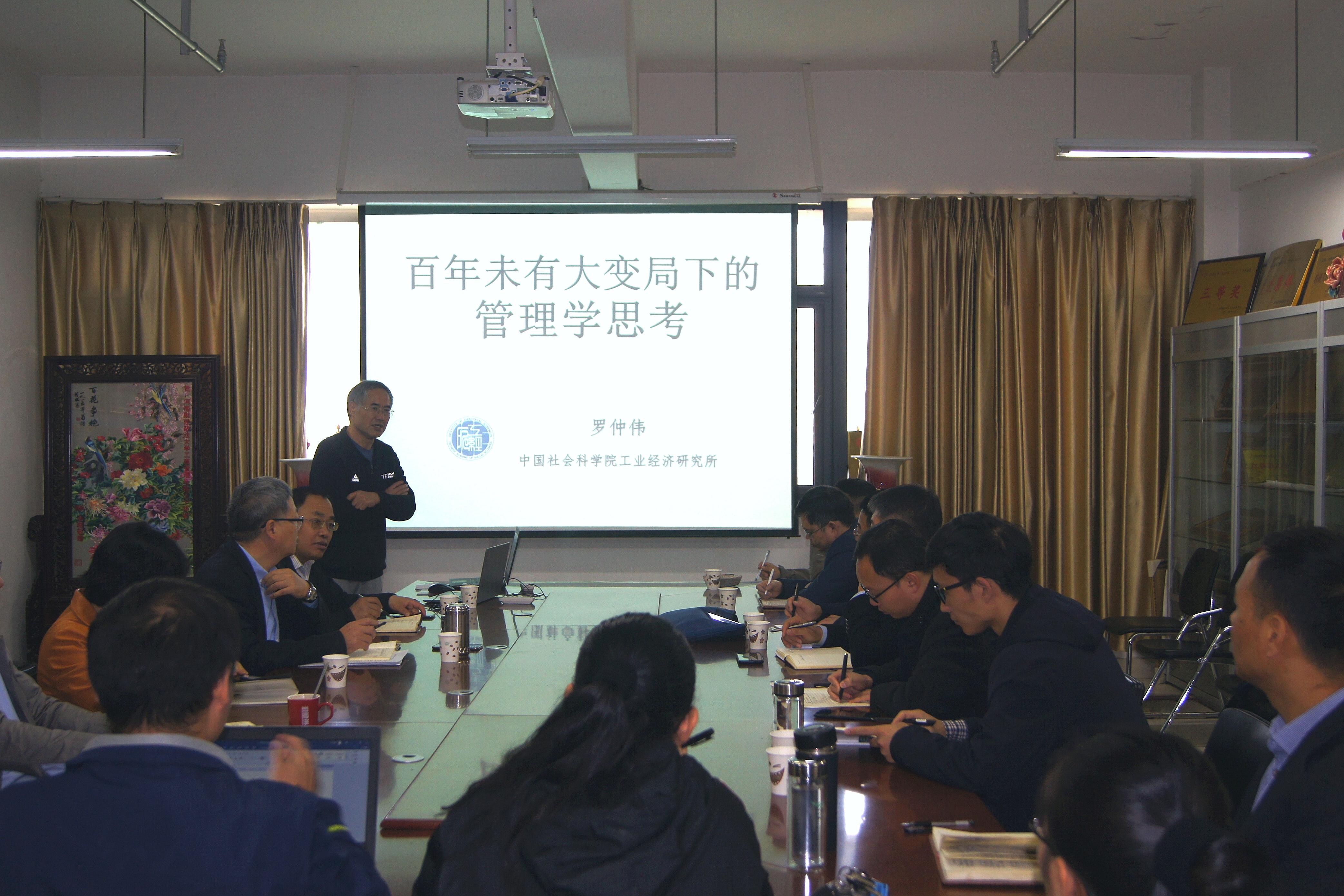 2019年10月30日上午,为促进学院“不忘初心、牢记使命”主题教育深入开展和工商管理一级学科建设,williamhill英国和工商管理一级学科, 特邀中国社会科学院罗仲伟教授莅临我校,在williamhill英国771会议室,为党员老师及工商管理学科的师生,以“百年未有大变局下的管理学思考”为题,做了一场精彩的专题学术报告。来自工商管理、会计、旅游与会展等学院的老师、研究生40多人参加了报告会。会议由williamhill英国院长牛全保教授主持。