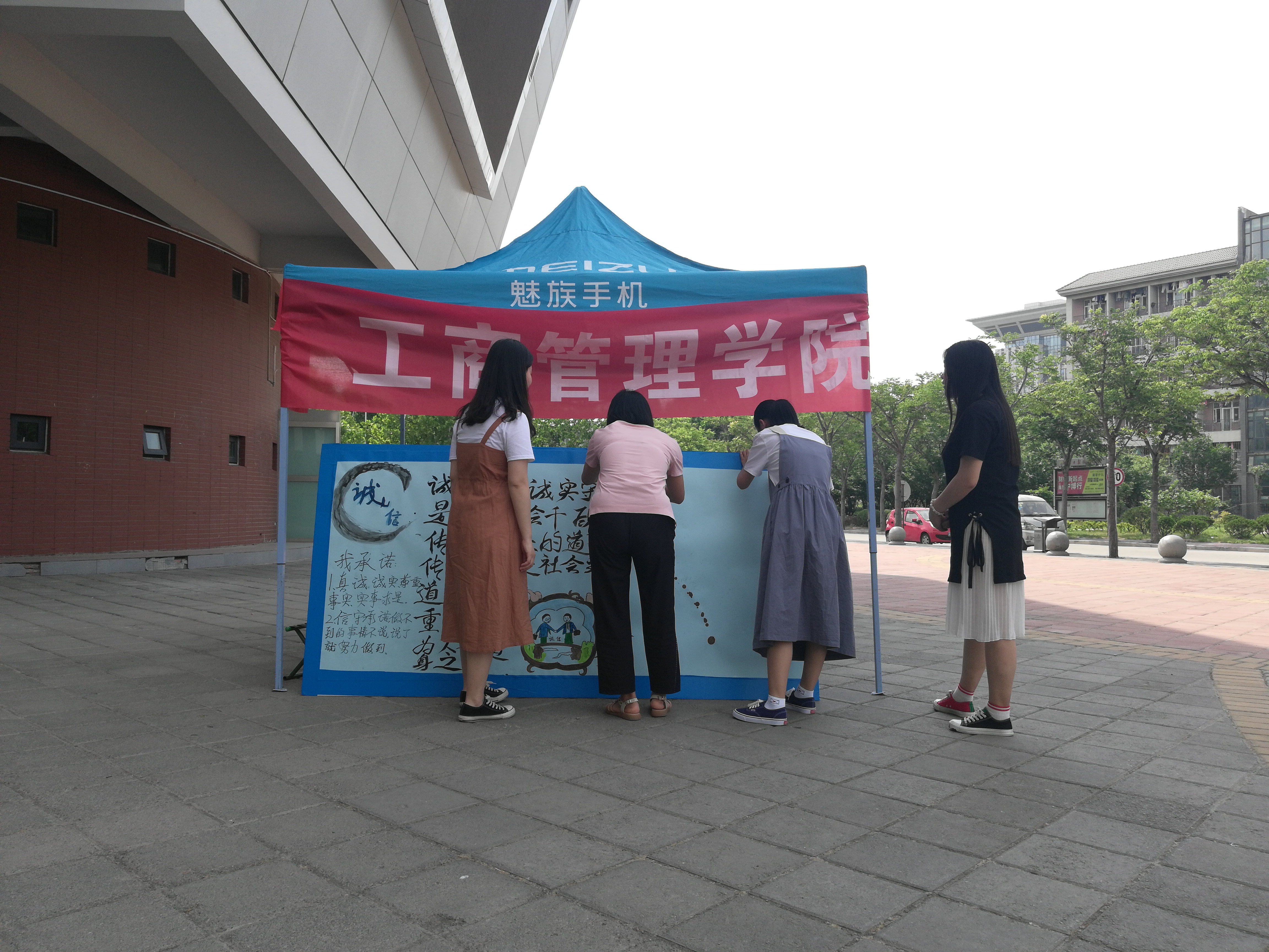 6月1日,williamhill英国资助中心在我校二餐南门举办了旨在加强学生诚信意识的校园诚信教育暨诚信宣传活动。