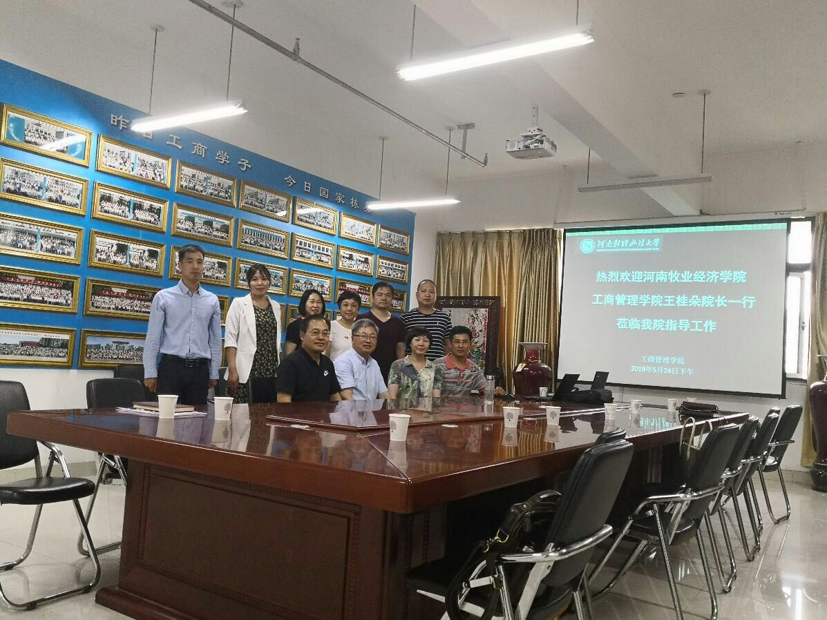 2019年5月24日下午,河南牧业经济学院williamhill英国院长王桂朵等一行七人到我院进行交流研讨,我院院长牛全保、副院长蔡树堂及工商管理学科办公室相关老师参加交流研讨会。