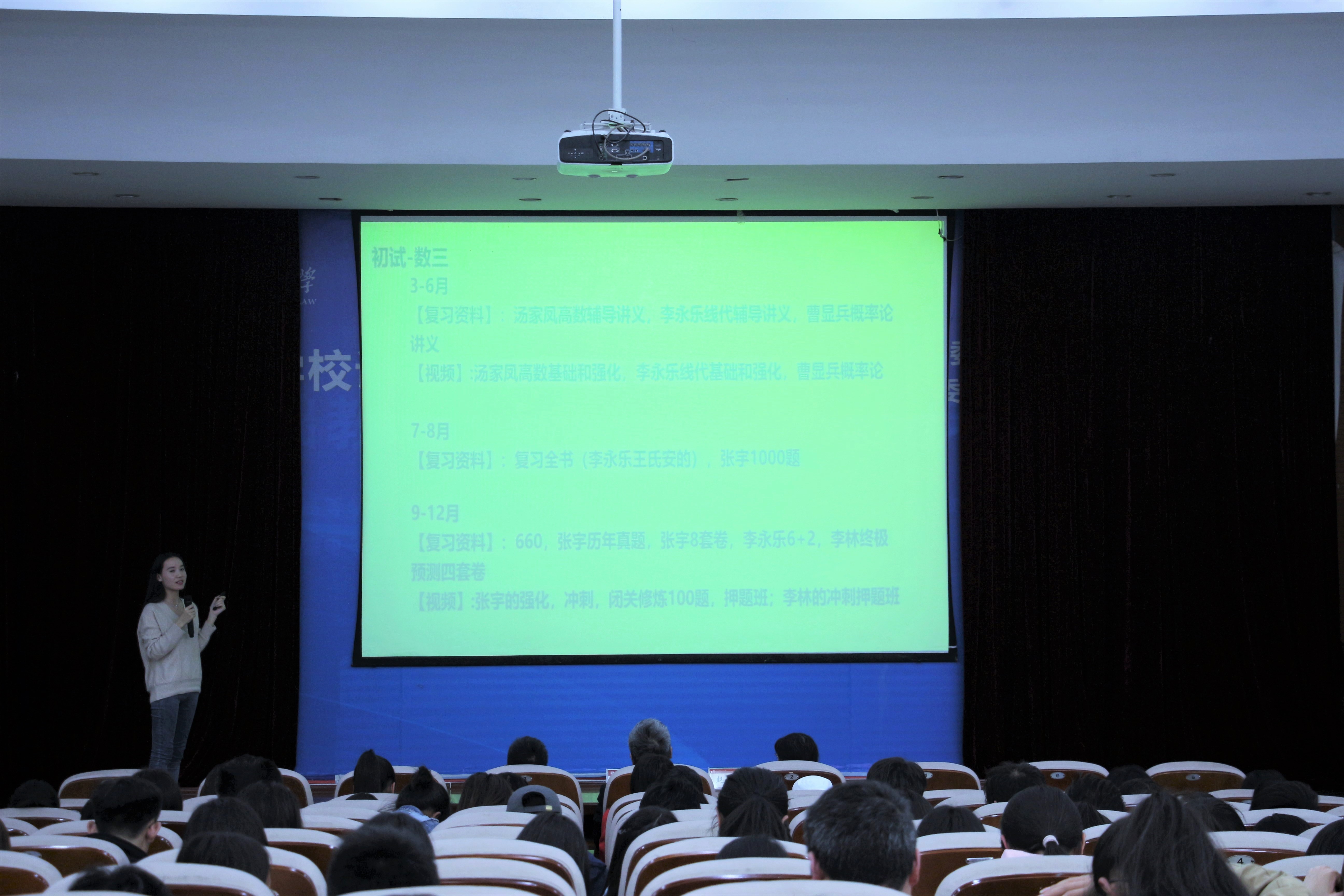 4月28日晚,williamhill英国于第一教学楼220教室举办考研经验交流会,本次考研经验交流会特邀考入中国人民大学、天津大学、华中科技大学等2019届优秀毕业生代表到会分享经验。院长牛全保、党委副书记赵辉、副院长马勇出席,300余名学生到场聆听。