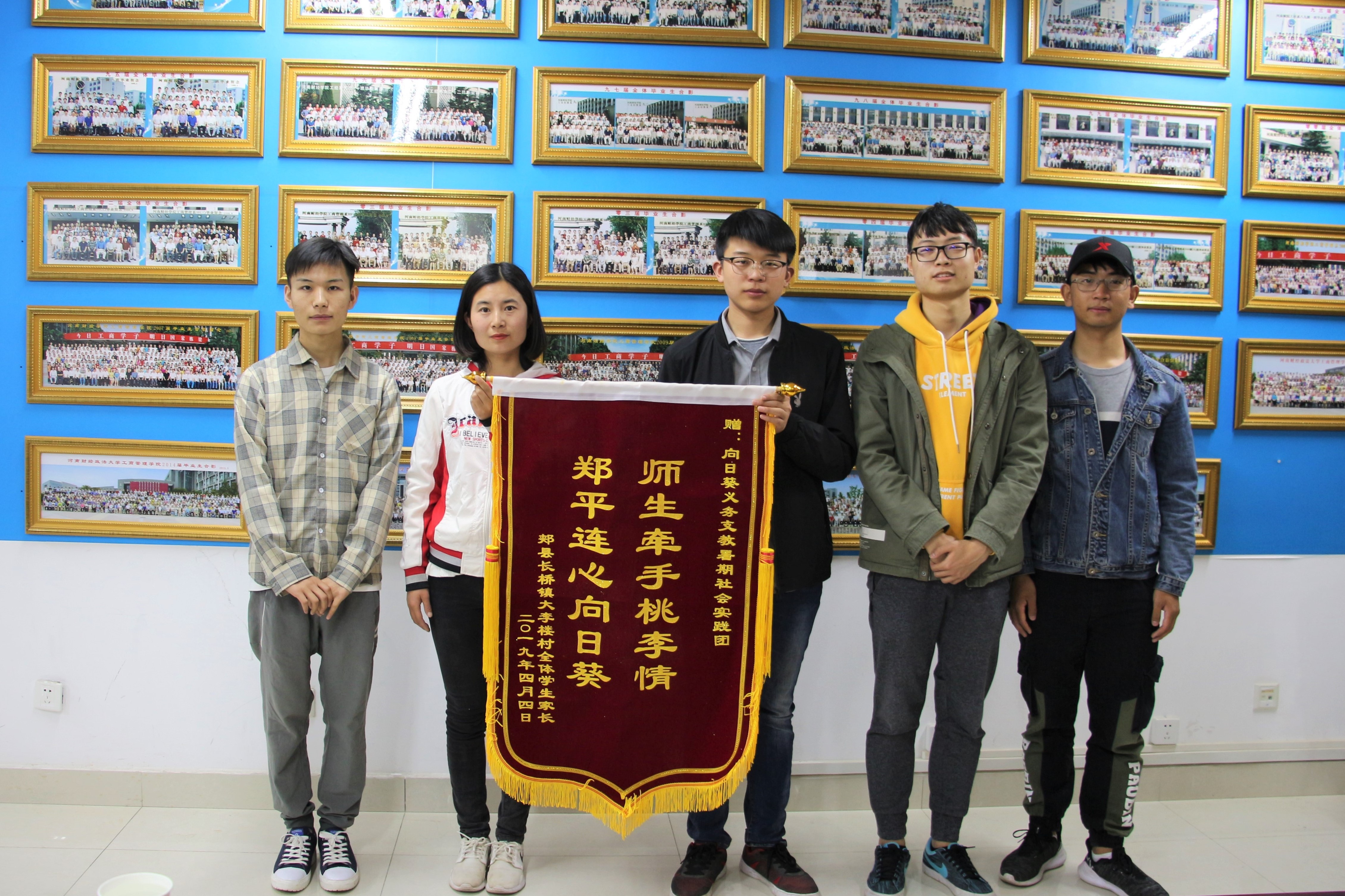 4月4日上午,平顶山市郏县大李楼村幼儿园园长王亚琳来到学校,向williamhill英国赠送“师生牵手桃李情,郑平连心向日葵”锦旗,感谢我院向日葵支教团队长期的支持。平顶山市郏县大李楼村是我院建立的社会实践基地,我院向日葵支教团队连续五年在村幼儿园开展暑期社会实践活动,关心帮助留守儿童,受到村民们的欢迎和称赞。授旗仪式在教科楼B座771会议室举行,学院辅导员郭媛园代表学院接收锦旗。王亚琳表示,向日葵支教团队在当地影响越来越大,村民和孩子们对支教活动充满期待和认可,双方互表感谢,并希望共同努力让支教活动能够继续传承下去,为大李楼村留守儿童送去温暖和关怀。向日葵支教团队队员参加本次仪式。