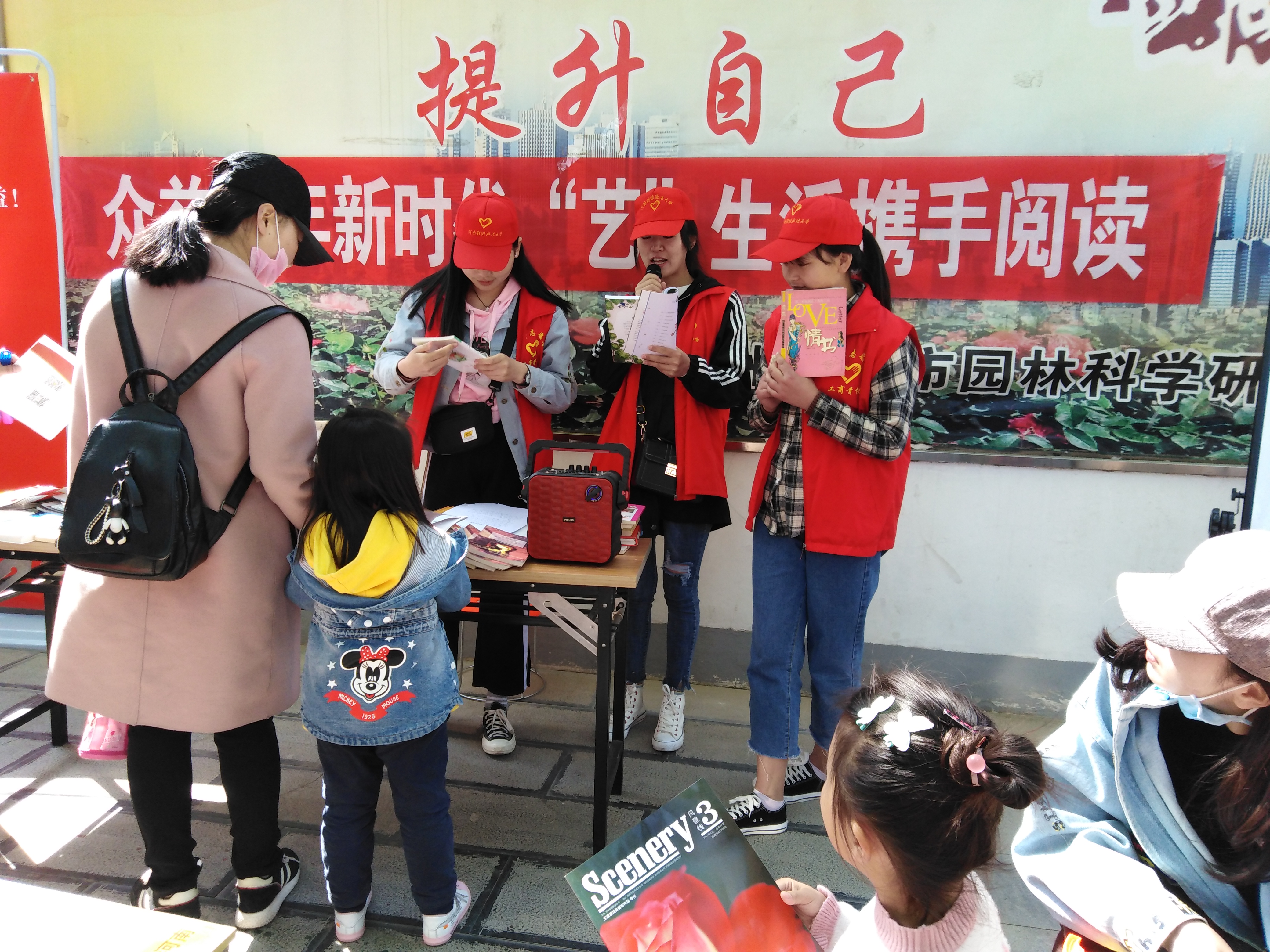 春日阅读活动中,志愿者们为前来阅读的居民朗诵诗歌和优美文章,主动帮助前来的居民寻找图书,并组织读者进行阅读交流。助残活动是由郑州市惠济区残疾人联合会、郑州市惠济区红十字会等联合主办,活动期间,志愿者与自闭症儿童共同起跑,互相扶持,不惧疲惫,在活动中拉进与自闭症儿童之间的距离。