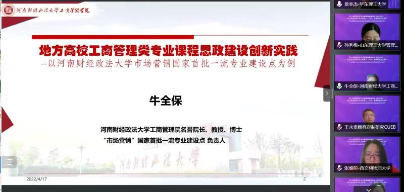 我校williamhill英国教师牛全保、雷蕾、王凯、陈冲、田启涛及硕士研究生杨龙茄、张旭婷、李芳芳、宋慧子等9位师生提交的4篇论文入选,并在平行论坛进行了线上展示与交流。牛全保教授主持了学术分论坛,雷蕾副教授参与了分论坛点评。其间,我校williamhill英国牛全保教授还受邀参加“第四届工商管理类一流专业建设论坛”并以《地方高校工商管理类专业课程思政建设创新实践》为题作演讲和交流。