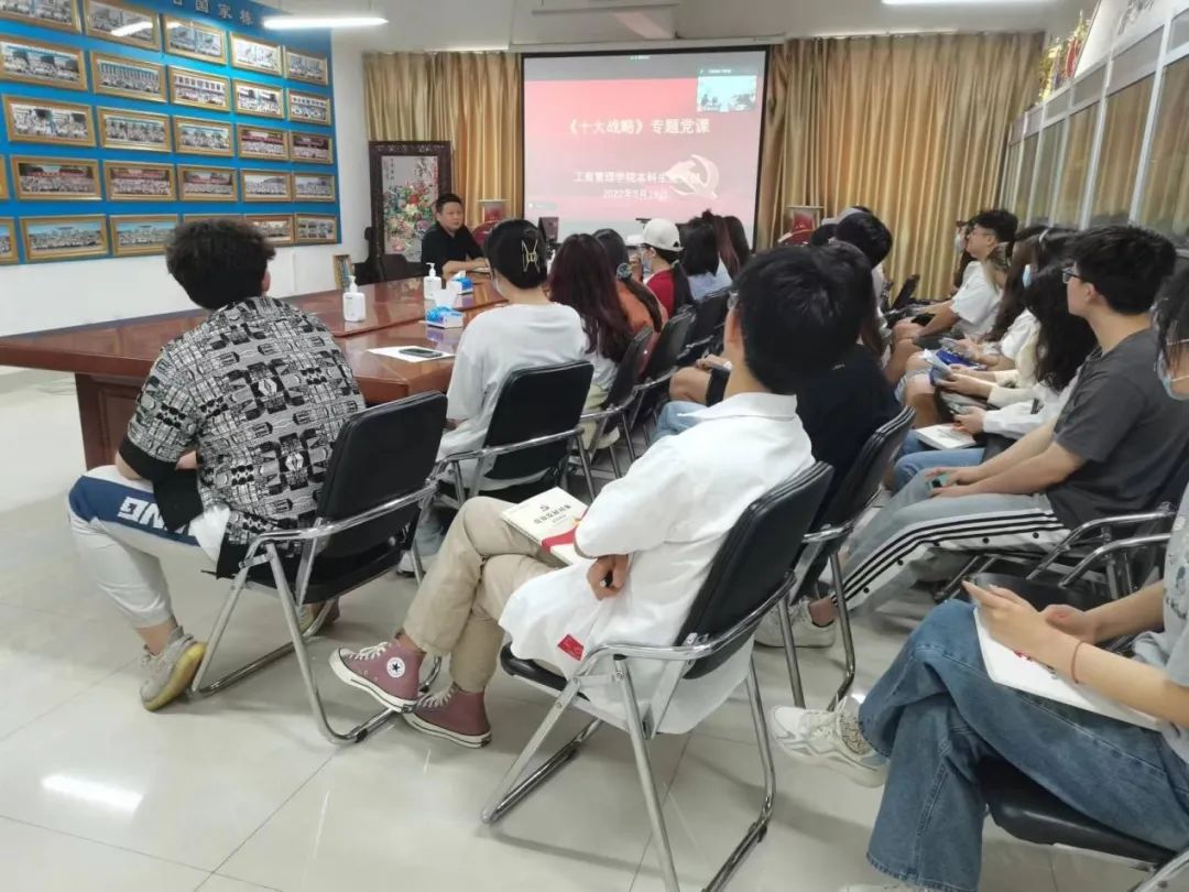 为深入学习贯彻省第十一次党代会精神,锚定“两个确保”,实施“十大战略”,5月19日本科生党支部在教科B771会议开展“十大战略”专题党课学习会议,学院党委副书记赵绍春主讲,全体本科生党员及2022年上半年发展对象参加学习。