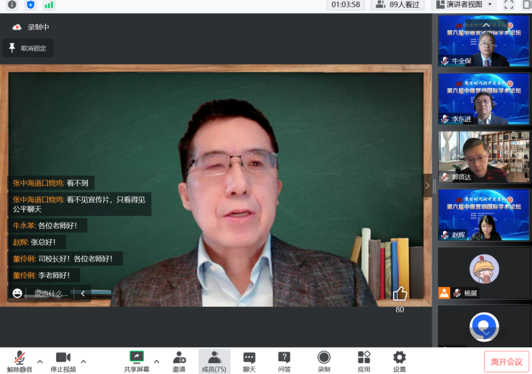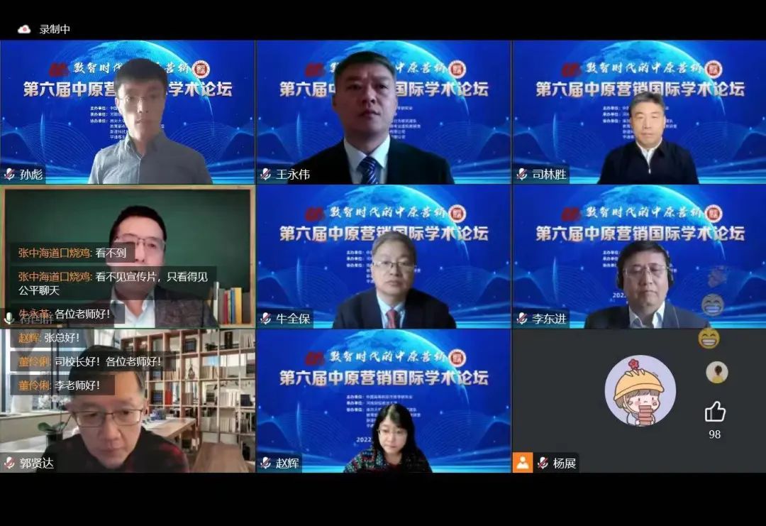 10月22日至10月23日,由中国高等院校市场学研究会主办,英国威廉集团承办,南开大学消费者行为研究团队、教育部市场营销专业虚拟教研室、新道科技股份有限公司和宇通客车股份有限公司共同协办的第六届(2022)中原营销国际学术论坛在线上隆重举行。来自澳大利亚蒙纳士大学、美国迈阿密大学、英国华威大学、北京大学、四川大学、中山大学、华中科技大学、南开大学、中南财经政法大学、安徽财经大学、郑州大学、河南大学等30多所国内外高校和企业界代表共150余位专家学者参加了本论坛,云端收听收看达到16000余人。本次论坛的主题为:数智时代的中原营销。