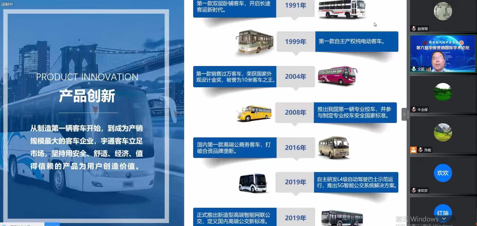 10月23日上午,与会嘉宾在云端对宇通客车股份有限公司进行了参访,王文超教授从印象宇通、宇通发展历程、实力宇通、科技宇通、国际宇通、人文宇通6个方面对宇通客车进行了全面介绍,让大家对这样一家数智营销的典型中原企业有了深入了解。李东进副会长对本次云参观进行了点评和总结。