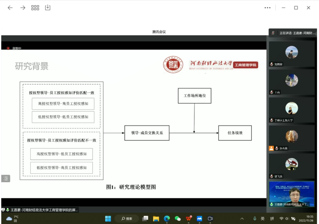 2022年11月26日—27日,第四届“管理哲学、研究方法与中国管理实践”学术研讨会暨中国企业管理研究会管理哲学专业委员会(2022)年会顺利召开,我院硕士研究生王嘉豪、刘雨展参加线上会议并做论文汇报。