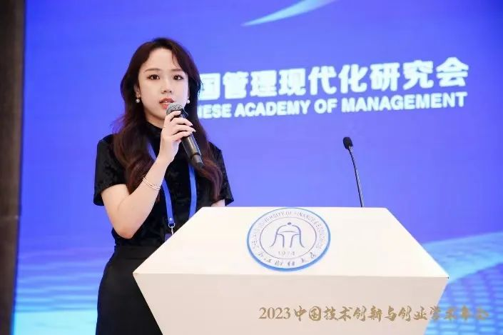 本次学术年会由浙江财经大学等单位主办,以“后疫情时代的中国创新创业研究”为主题,邀请了国内专家学者和企业家进行专题汇报,加强了跨学科、跨领域的深度交流互动,旨在促进我国创新创业领域相关学术研究的发展。会议共设有12个分论坛,包含6大主题,接收近140篇来自全国各地的论文,我院共有5篇论文在本次学术年会中进行分享汇报。硕士研究生李想代表团队作题目为《双元学习对科技型中小企业数字化转型成效的作用机理研究》的论文报告,并荣获会议优秀论文。硕士研究生安鸿飞代表团队作了题目为《价值共创促进创业团队创造力提升的双路径机制研究》的论文报告,硕士研究生王嘉豪、耿森分别代表团队作了题目为《员工越轨创新行为的双刃剑效应:基于情感事件理论》和《工作场所地位与越轨创新:创业导向的调节作用》的论文报告,本科生刘金金代表团队作了题目为《企业会因“ESG”评级提高持续创新能力吗?—基于商道融绿ESG评级的准自然实验》的论文报告。