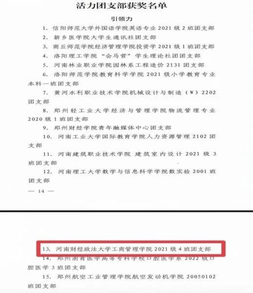 近日,由共青团河南省委举办的2023年度“活力杯”河南高校共青团基层基础工作大赛评选结果揭晓,我院210304班级荣获活力团支部称号。