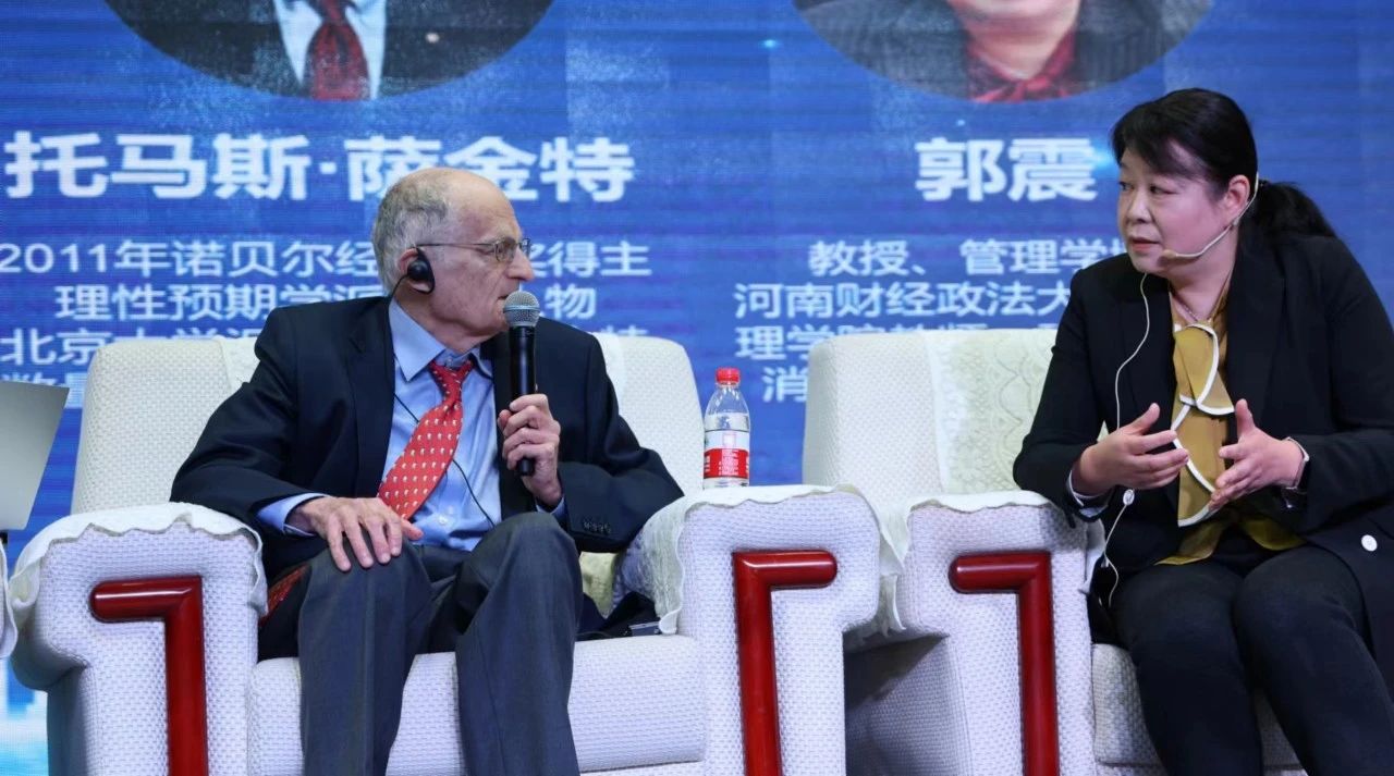 在圆桌对话环节,我院教师代表郭震、孙彪与萨金特教授围绕如何有效整合横断面数据和面板数据以构建复杂经济现象分析框架、中小企业在当今时代中的角色以及AI技术对其产生的影响等问题进行交流。萨金特教授强调,在快速发展的技术环境下,持续学习和适应才能应对日新月异的变化和发展所带来的未知问题。