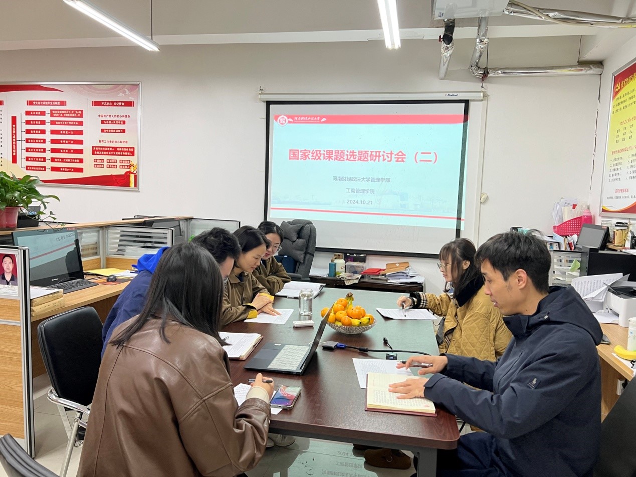 10月21日,学院技术经济及管理学科在教科楼773会议室举行国家级课题选题研讨会。该学科拟申报2025年度国家级课题教师参加会议,会议由王霞副教授主持。