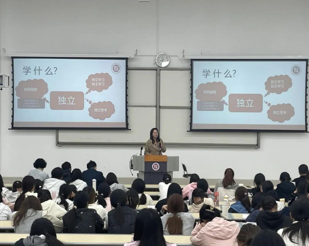 张佳老师通过问题“你会学习吗”展开讨论,着重指出大学乃至人生都没有标准答案,同学们应尽快扭转应试思维,以多元化的视角去拥抱大学生活。针对“大学学什么”的问题,她指出,“独立”才是大学的必修课,要学会独立学习和独立思考,在独立中去找到自我。