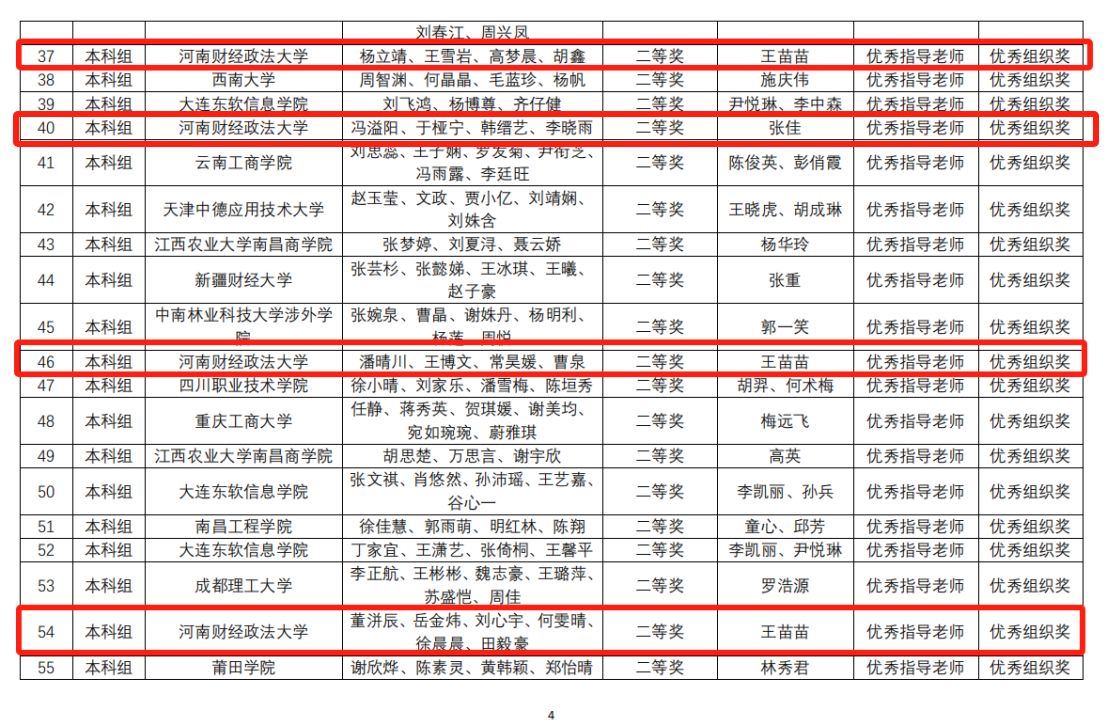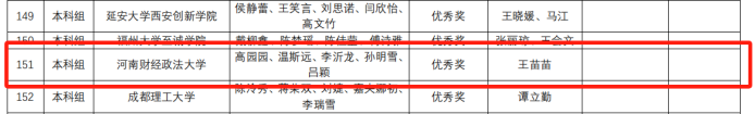从启动报名至闭幕,赛程将近六个月。大赛期间全国共计近八百支赛队参赛。经过预赛阶段的激烈角逐,有三百多支赛队进入全国总决赛。我院有20支团队脱颖而出,进入全国总决赛。经过激烈比拼,我院最终获得全国一等奖5项、全国二等奖7项、全国三等奖3项,优胜奖5项,王苗苗副教授、张佳博士两位指导教师获“优秀指导老师”称号,我校还获得“突出贡献奖”和“最佳组织奖”。