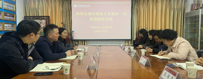 李志兰代表学院对来访嘉宾表示热烈欢迎,并简要介绍我校学科治理体系综合改革背景下学院的基本情况和发展现状。她指出学院始终坚持“立足产业、服务社会”理念,重视产教融合协同发展,取得了显著成果。紧接着,张晓旻系统介绍集团的基本情况及产教融合实践成果,指出河南人才集团作为河南省首家省级人才发展平台,已构建起覆盖人才引育、产教协同、创新创业的全链条服务体系,助力高校人才培养与区域产业需求精准对接。随后,靳晶晶重点介绍了事业部在大学生竞赛、企业定制化培训等领域的创新实践。最后,双方就举办大学生竞赛、企业培训项目攻坚、靶向输送学生进入头部企业实习等未来合作项目进行了广泛讨论。