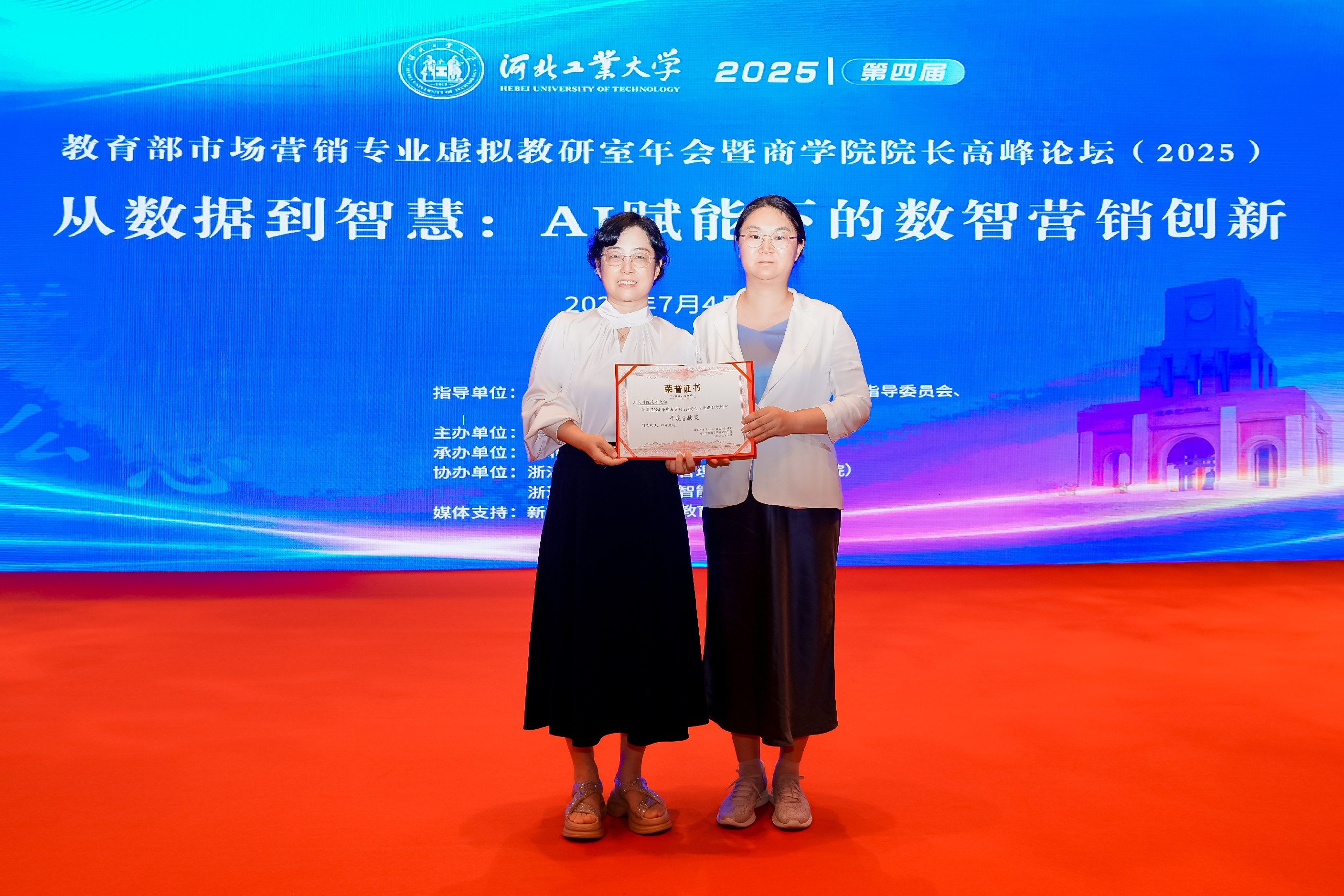 7月4日-6日,第四届教育部市场营销专业虚拟教研室年会暨商学院院长高峰论坛在天津举行。会议由教育部市场营销专业虚拟教研室主办,河北工业大学经济管理学院承办,由教育部高等学校工商管理类学科专业教育指导委员会、教育部虚拟教研室经济管理学科协作组指导。来自全国100所高校、12家企事业单位的200余位资深专家和学者嘉宾参会。我院副院长李志兰和市场营销教研室主任王苗苗应邀参加会议和颁奖典礼。