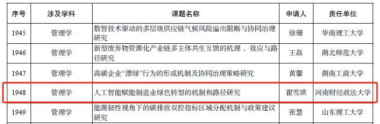 近日,全国哲学社会科学工作办公室公布2025国家社会科学基金项目评审结果,我院教师翟雪琪副教授获批国家社会科学基金项目青年项目。