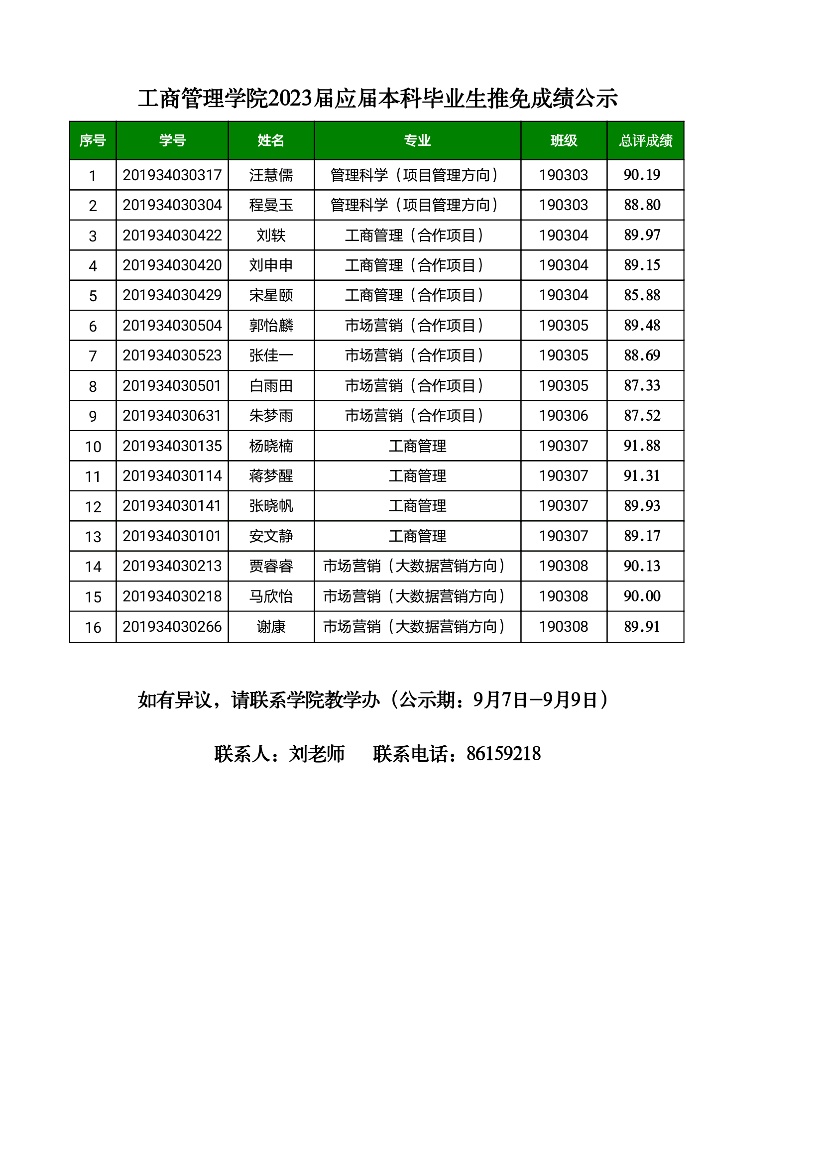 williamhill英国2023届应届本科毕业生推免成绩公示