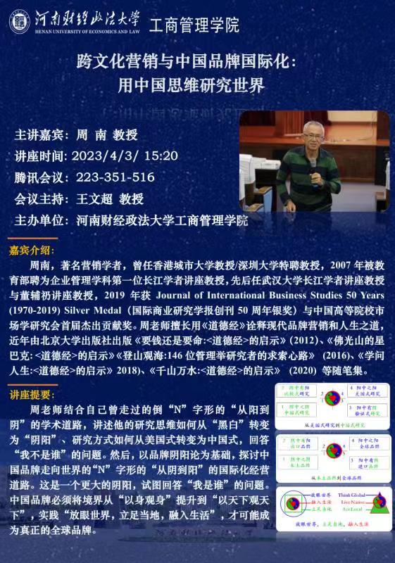 学术讲座预告| 跨文化营销与中国品牌国际化:用中国思维研究世界