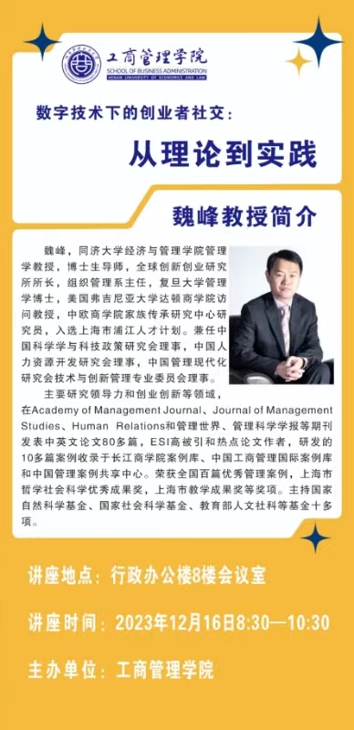 学术讲座预告|数字技术下的创业者社交:从理论到实践