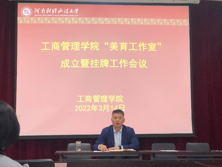 2022年3月14日下午,学院在教科楼532会议室举行“美育工作室”挂牌仪式暨“管理美学与美育”研讨会。院长王永伟、全院专业教师及辅导员代表参加了本次会议。在研讨会上,王永伟指出,加强高校美育工作,打造“以美育人、以美化人”的教育环境,对落实高校“立德树人”根本任务具有重要价值。美育的本质是人格的教育,新时代的高校美育,需要抓住人格教育这一本质,塑造学生健全人格。工商管理教育的重点就是培养学生的企业家精神和管理者素养,这和学生健全的人格教育是分不开的,学院将鼓励教师将美育与工商管理学科专业教学、社会实践和创新创业相结合,积极探讨“管理美学与美育”“美育与人性化管理”等专题研究。