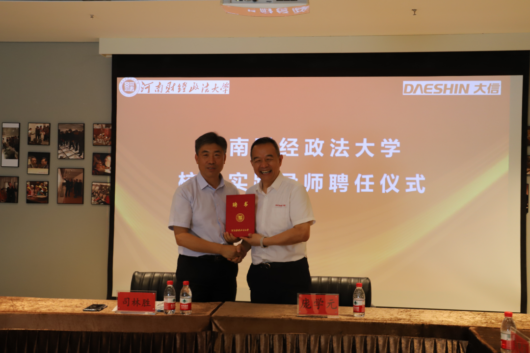 在校外实践导师聘任仪式上,司林胜对大信家居在我校实践教学、学生就业、教师科研、产教合作等方面的支持表示感谢,他说,郑州大信家居作为国家级工业设计中心、国家专精特新“小巨人”企业、“设计河南”的践行者和引领者,是我校重要的省级实践教学基地。期望大信继续参与学校教育教学改革和人才培养环节,推进产学研用深度融合。尤其在“十大战略”“设计河南”背景下共建“设计学院”、持续参与专业竞赛、提升管理创新水平等方面进一步深入合作。随后,司林胜向大信家居董事长庞学元颁发了校外实践导师证书。