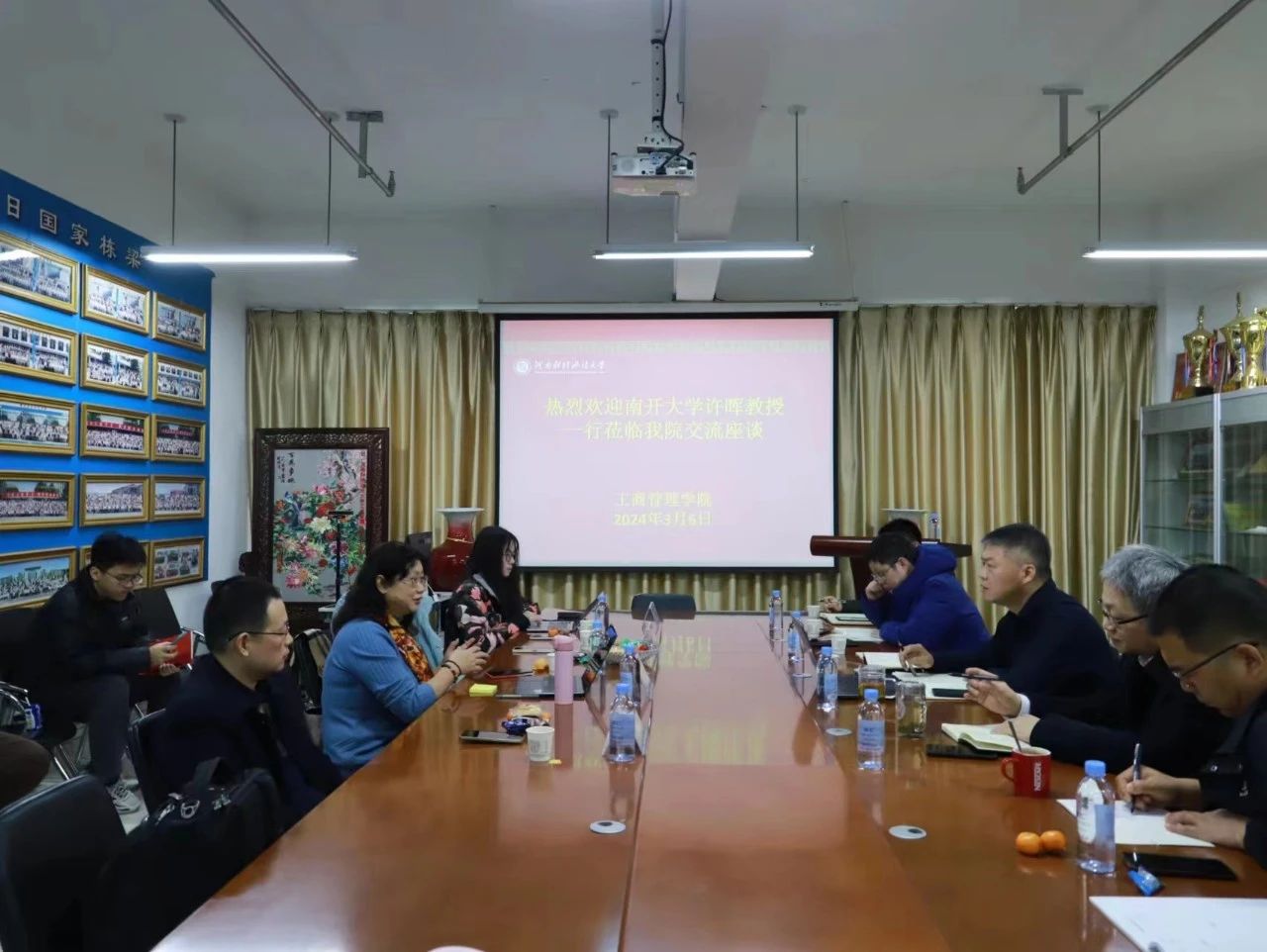 3月6日,南开大学许晖教授、梁峰副教授应我院邀请来我校进行教学模式创新研讨。研讨会在郑东校区教科楼B771会议室举行,williamhill英国院长王永伟、牛全保教授、williamhill英国和旅游管理学院教师、研究生参加了此次研讨会。
