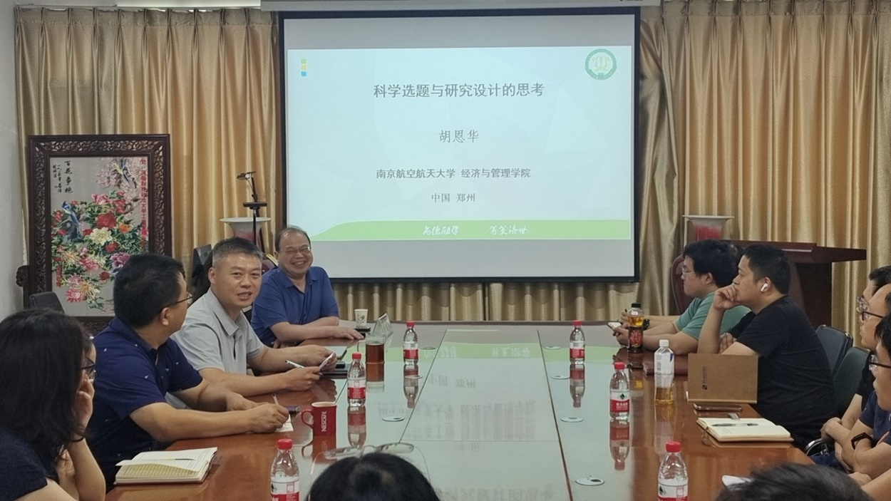 7月6日下午,南京航空航天大学胡恩华教授应邀到我院进行学术交流。报告会在郑东校区教科楼B771会议室进行,报告题目为:科学选题与研究设计的思考。我院部分教师参加。