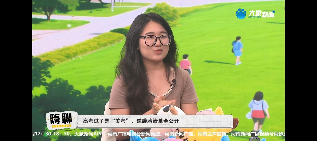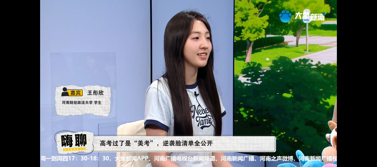 6月11日,我院工商管理专业大三学生宋雨鑫和人力资源管理专业大一学生王彤欣受邀做客河南广播电视台《嗨聊》节目,围绕“高考过了是‘美考’,逆袭脸清单全公开”这一话题展开对话,节目通过大象新闻客户端、河南新闻广播等平台同步直播,吸引了众多观众的关注。