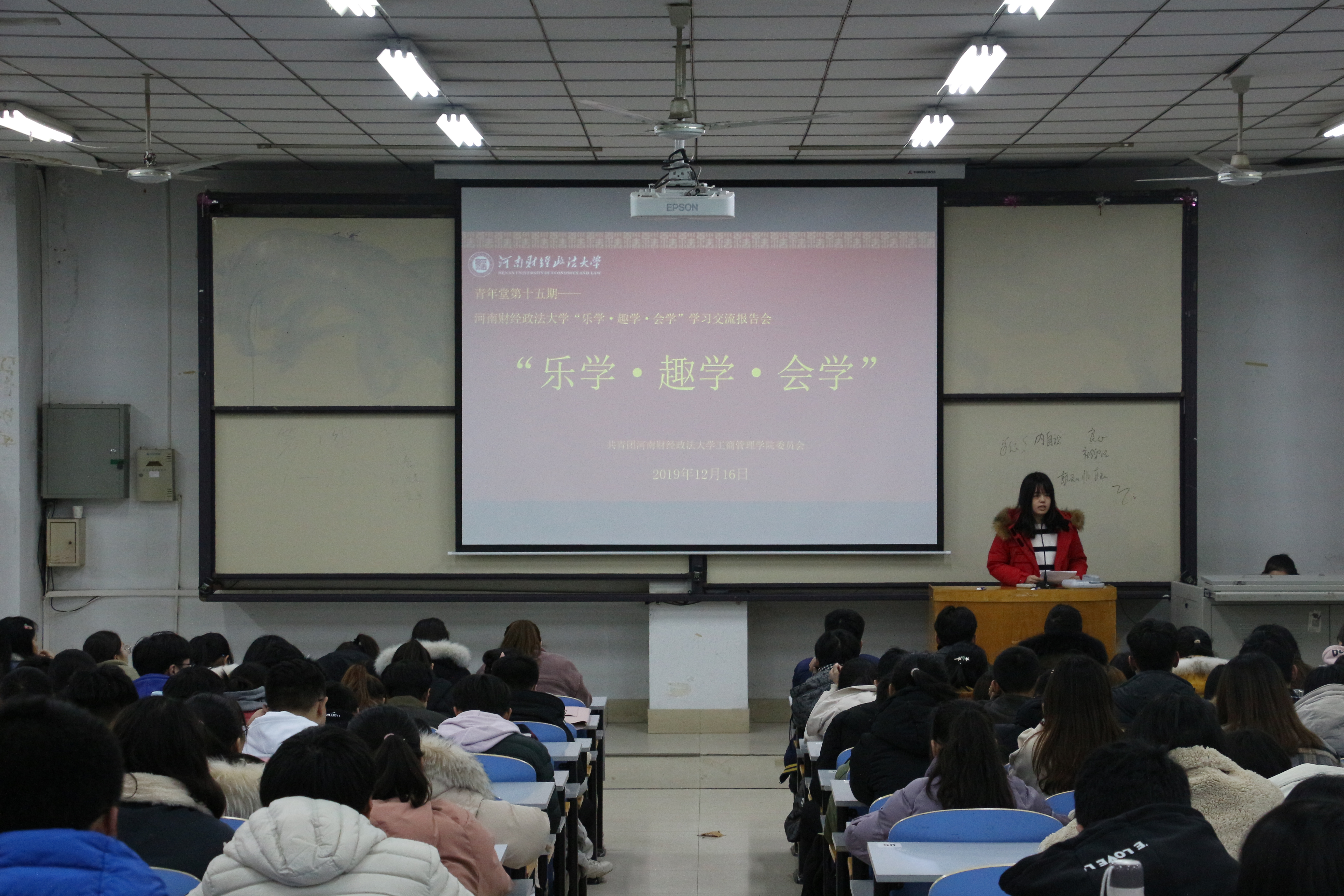 12月16日、18日晚,williamhill英国分别于文北校区十号楼1楼阶梯教室和郑东校区第一教学楼220报告厅举办第十五期青年堂“乐学·趣学•会学”奖学金获得者学习经验分享交流会,2019级全体学生参加。