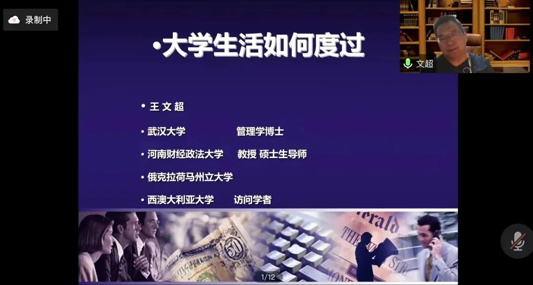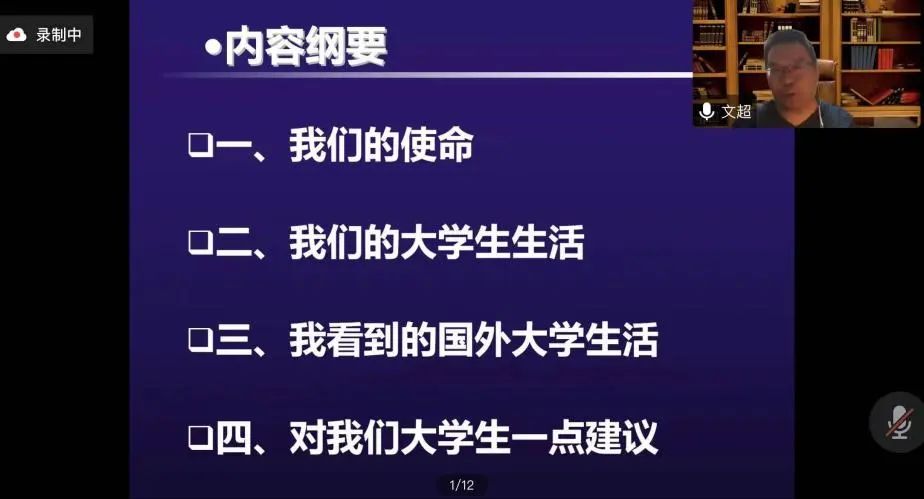 王文超从阐述新民主主义革命的伟大意义出发,以大学生活为切入点,从四个方面进行了深刻而全面的讲解:一是我们的使命;二是我们的大学生活;三是国外的大学生活;四是对大学生的建议。他首先带领全体与会成员深入了解党的性质,走进党史,积极号召传承初心使命,又细致分类学生实际情况,剖析学生们存在的各种问题,通过与国外大学进行对比,指出了国内学生个人学习能力与学校教育有待改进之处。最后通过回答同学的疑问,针对“大学生活如何度过”这一主题提出了宝贵的建议,鼓励同学们要树立正确的人生观和价值观,培养乐观进取的人生态度,学会独立思考,学会学习、做事,同时也要开阔视野、增长见识。