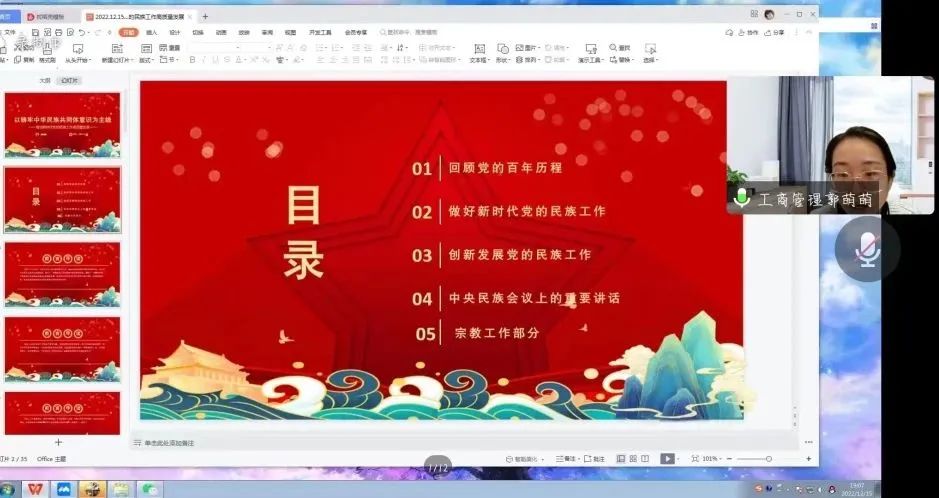 12月15日晚,我院线上开展第二十四期入党积极分子党课培训,本次党课培训由辅导员郭萌萌老师担任主讲人,主题是“以筑牢中华民族共同体意识为主线推动新时代党的民族工作高质量发展”。党务中心培训部部长李茂森同学主持,全体入党积极分子参会。