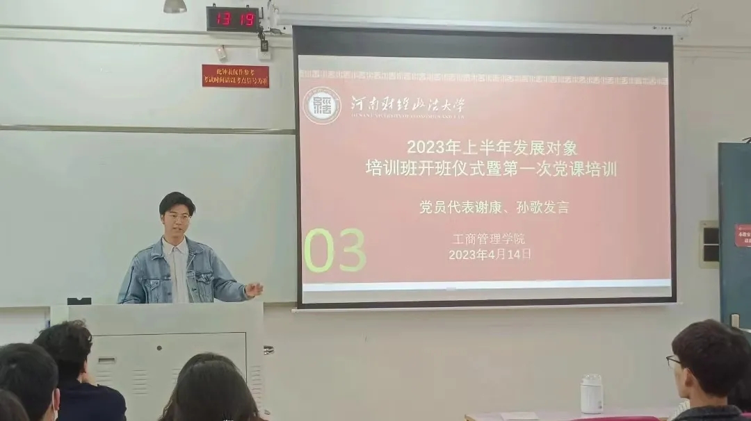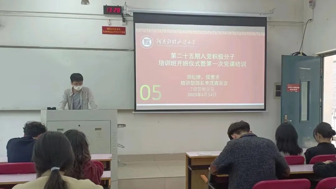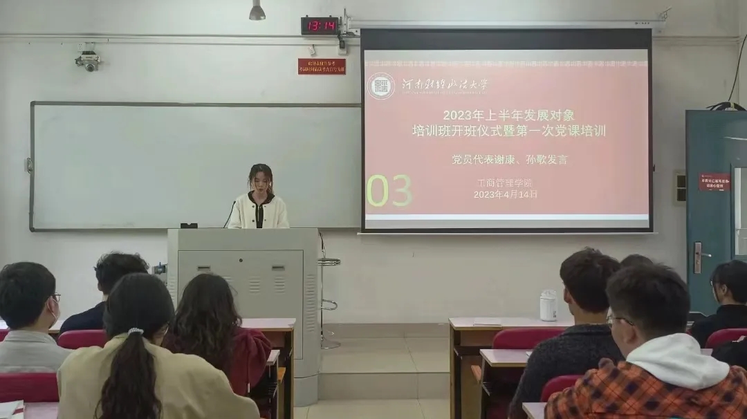 4月14日中午,我院2023年上半年党员发展对象培训班开班仪式在教一202举行。会议由党务中心主任刘金金同学主持,党员代表、本期发展对象参加会议。