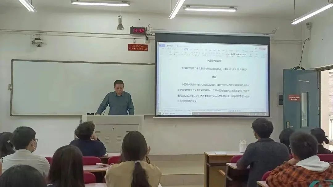 4月14日中午,我院2023年上半年党员发展对象第一次党课培训在教一202举行。学院党委副书记赵绍春为本次发展对象开讲第一课,此次培训内容是学习《中国共产党章程》。