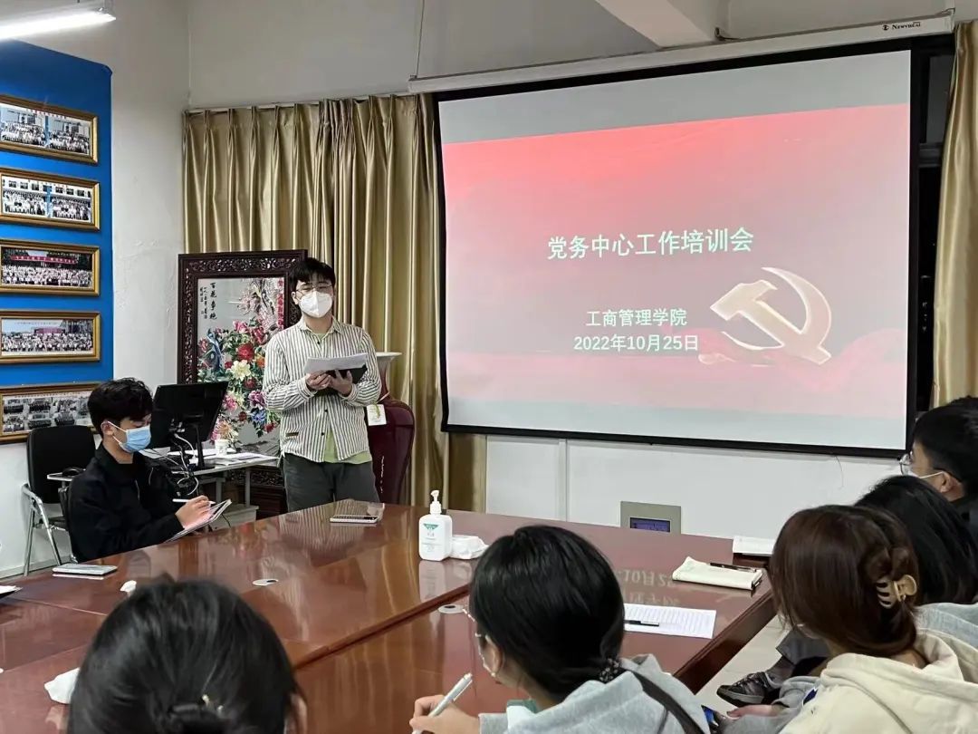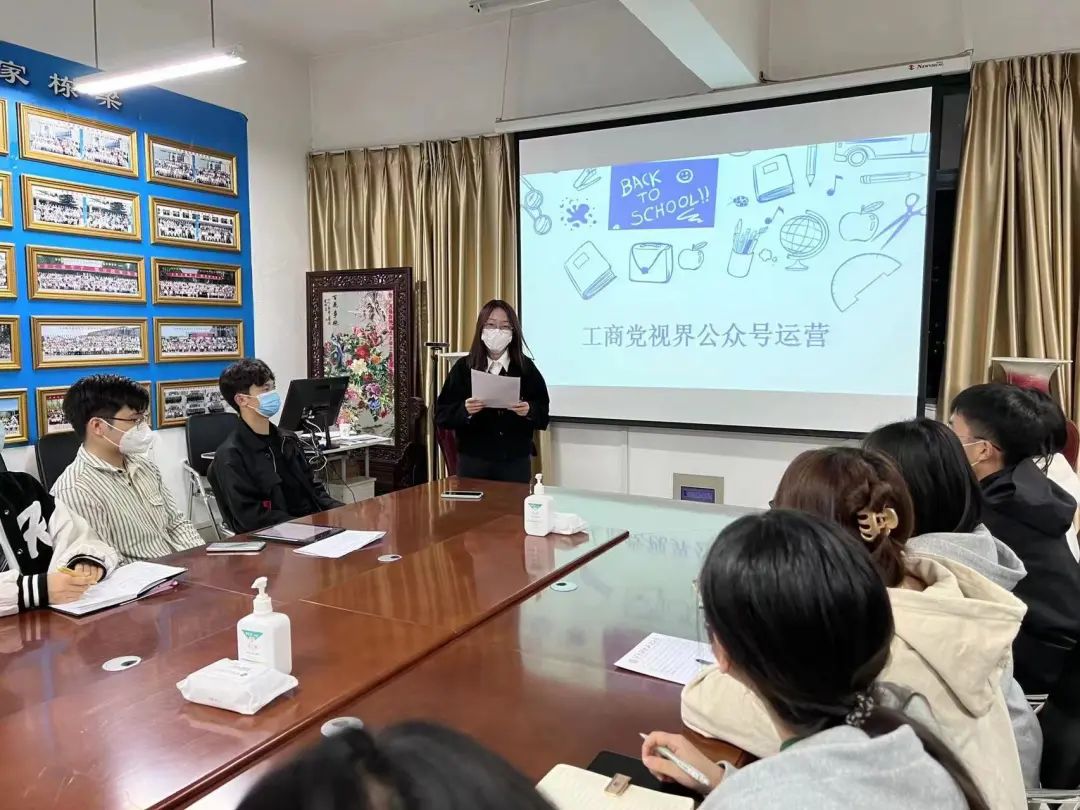 会上,宣传部部长丁力讲解了工商党视界公众号的运营方式及工作流程,培训部部长李茂森讲述了入党流程及具体工作形式与分工,材料部部长孙婷婷讲述了入党阶段材料工作的十个步骤和工作要求。党务中心主任刘金金进行总结,从培养学生干部角度对全体干部的学习适应能力、工作态度、创新能力、团队合作等方面提出要求。