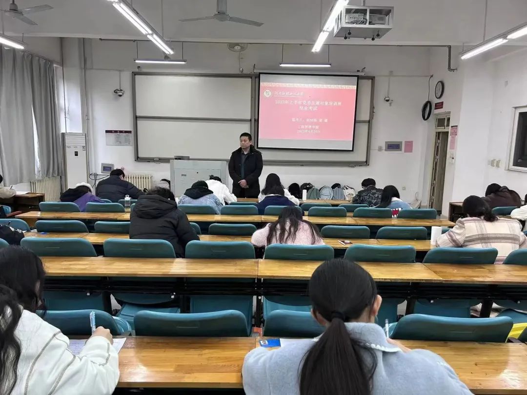 4月24日,我院按照校党委组织部安排,2023年上半年党员发展对象结业考试在教科A-202举行。全体发展对象参加考试,学院党委副书记赵绍春、团委书记唐璐亲临监考。