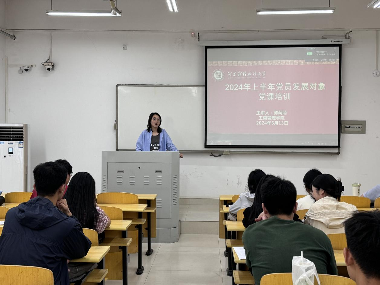 近期,我院组织2024年上半年发展对象党课培训。本期培训分别由学院党委书记赵辉、团委副书记郭媛园、辅导员郭萌萌等老师担任主讲,全体本期发展对象参加。