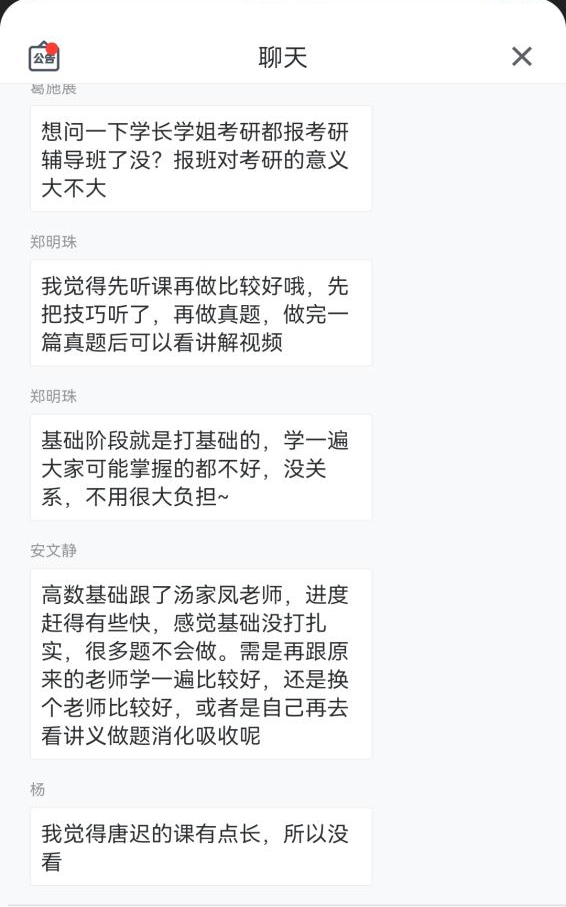 为了进一步提高我院学生的考研热情,帮助考研学子充分认识考研路上所需面对的问题,了解如何正确进行考研院校的选择以及如何高效备考,学院于5月4日晚上七点开展线上考研经验分享会。此次会议邀请了五位18级考研上岸的优秀学子为主讲人,与同学们分享考研经验。