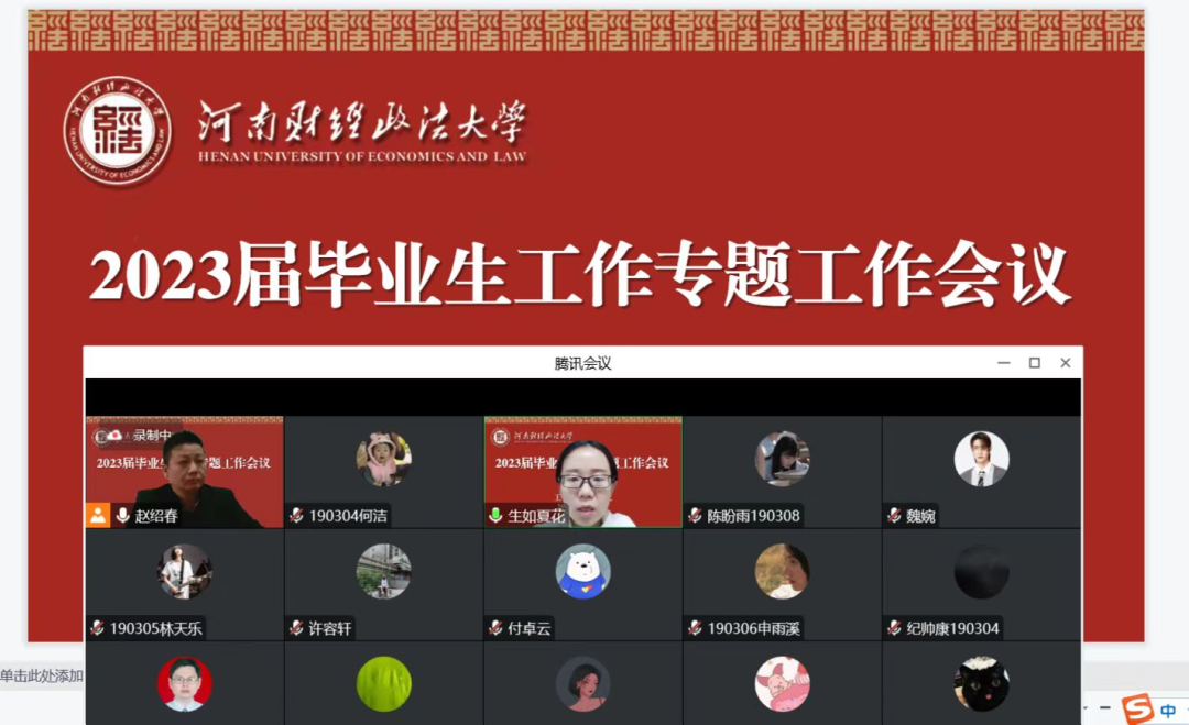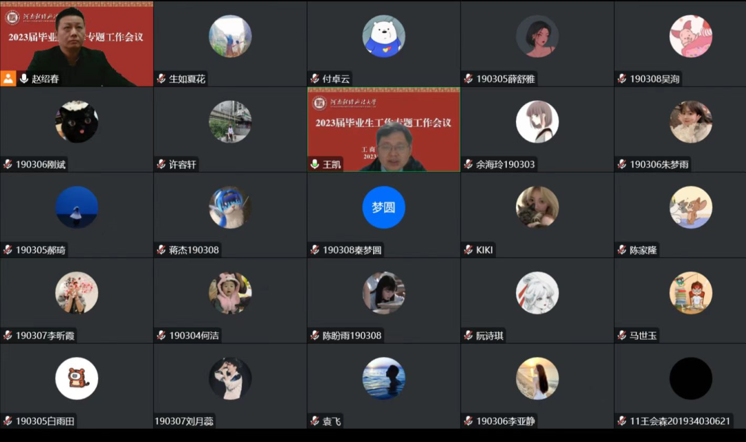 1月13日,学院线上召开2023届毕业生工作专题会议。副院长王凯、教学办主任刘俊苹出席,2023届毕业生参加会议,会议由党委副书记赵绍春主持。