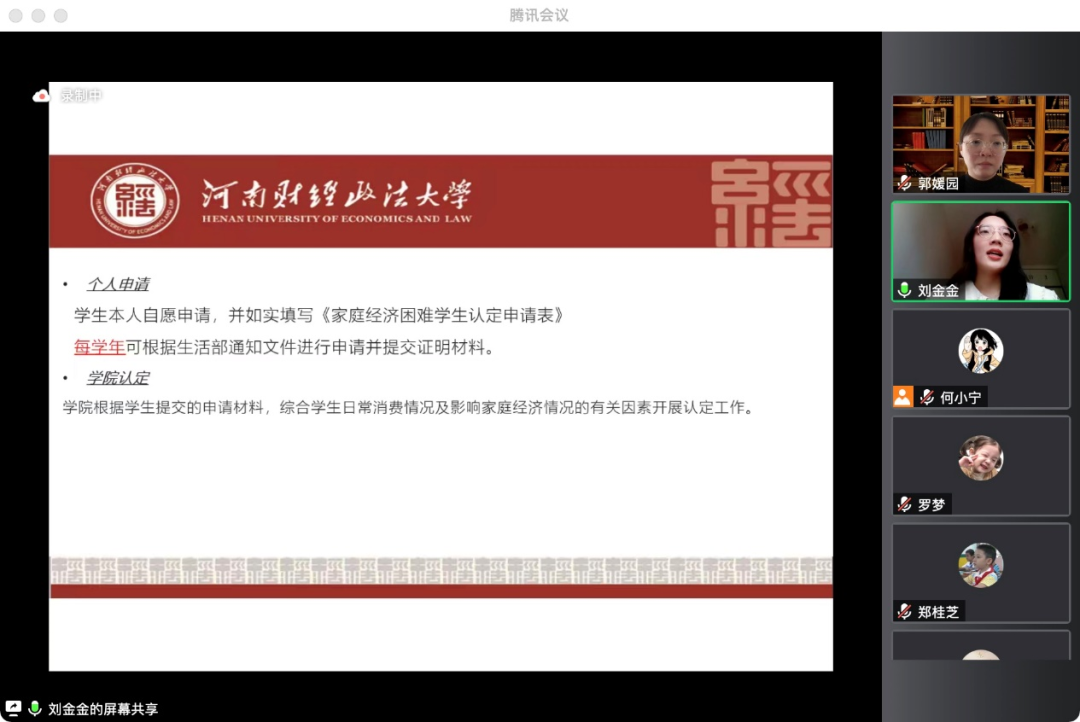 本次会议以深入学习国家学生资助政策,持续推进诚信、感恩励志教育为主题,邀请2019级蒋梦醒、2020级刘金金、2020级李慧萌三名优秀受助学生担任学院资助政策“宣传大使”,宣讲国家资助政策内容并分享个人受助的成长经历,激励同学们感恩国家帮助的同时自立自强、学好专业知识,用知识改变命运,努力成为社会主义建设的合格建设者和可靠接班人,回馈母校、回报社会。